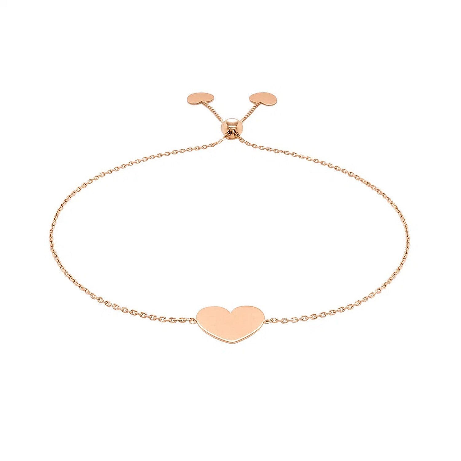 14k Rose Gold Adjustable Heart Bracelet (0.90 mm)