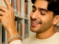 14k Two Tone Gold 8 1/2 inch Curb Chain Bracelet with White Pave