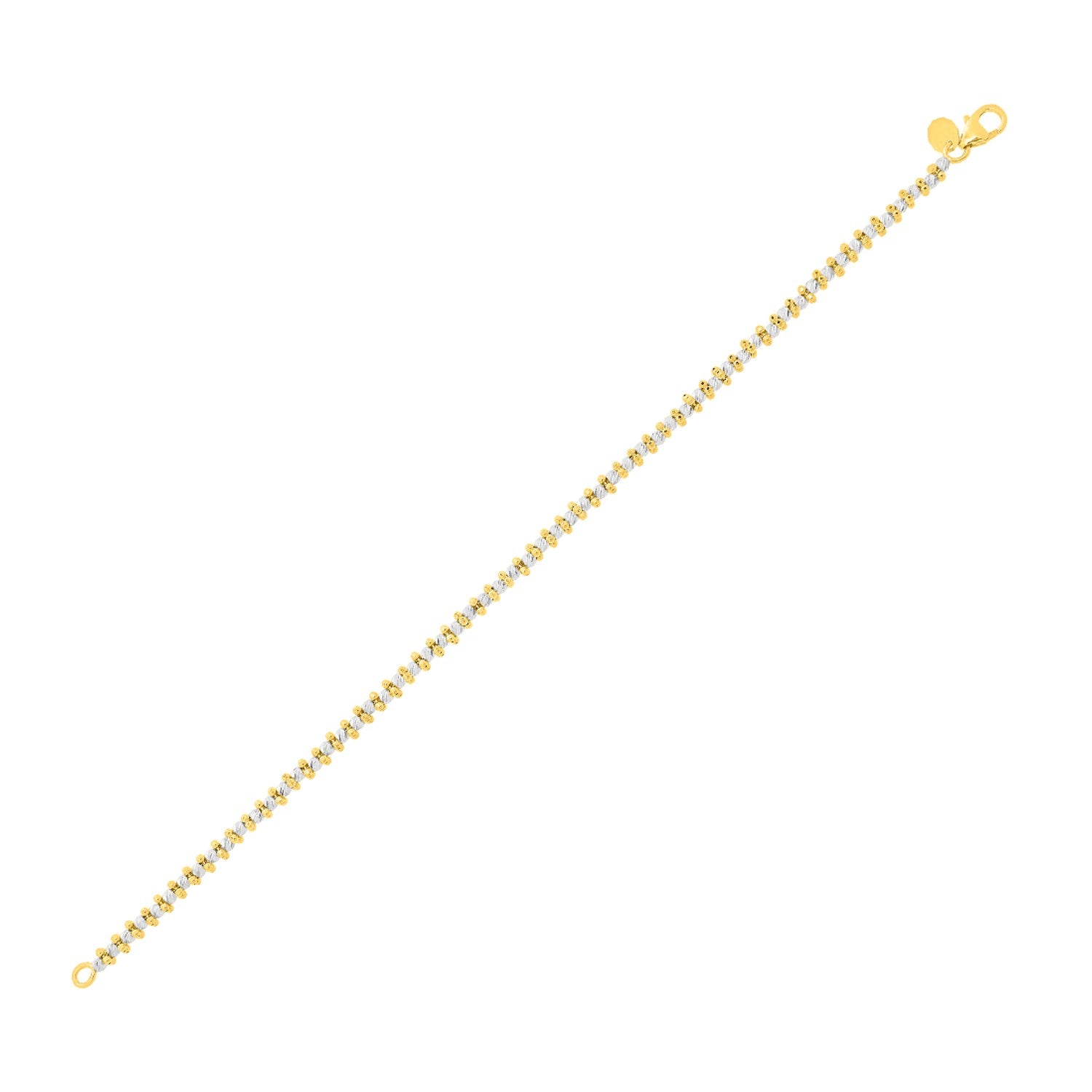 A stunning 14k two-tone gold bracelet featuring white gold beads and a lobster clasp, showcasing elegance and luxury. Measures 7 inches in length.