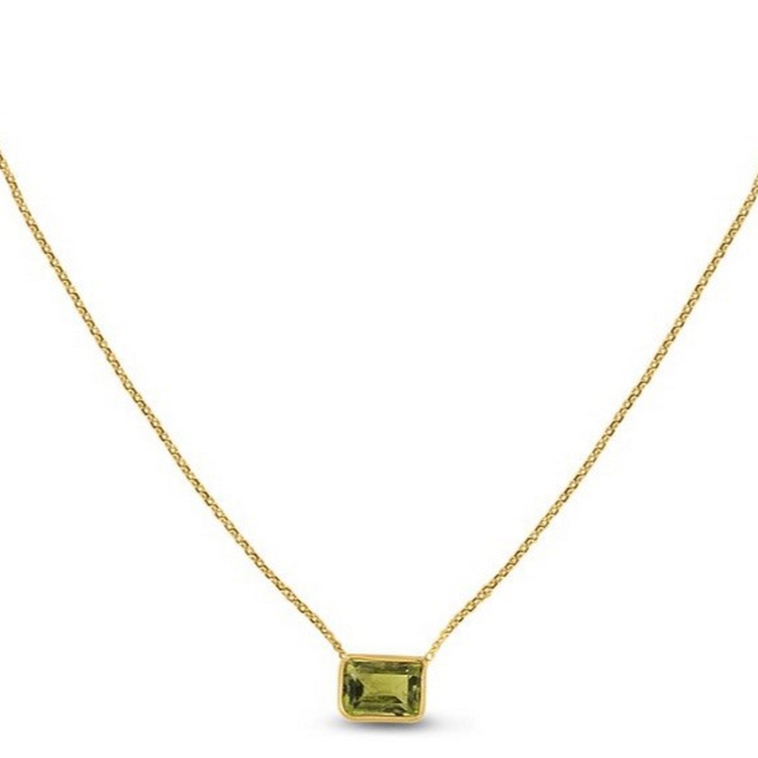 14K Yellow Gold Emerald Cut Peridot Necklace