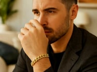This semi solid Miami Cuban bracelet comes in 14k yellow gold and has a width of 10.5 millimeters. Secured with a box clasp.