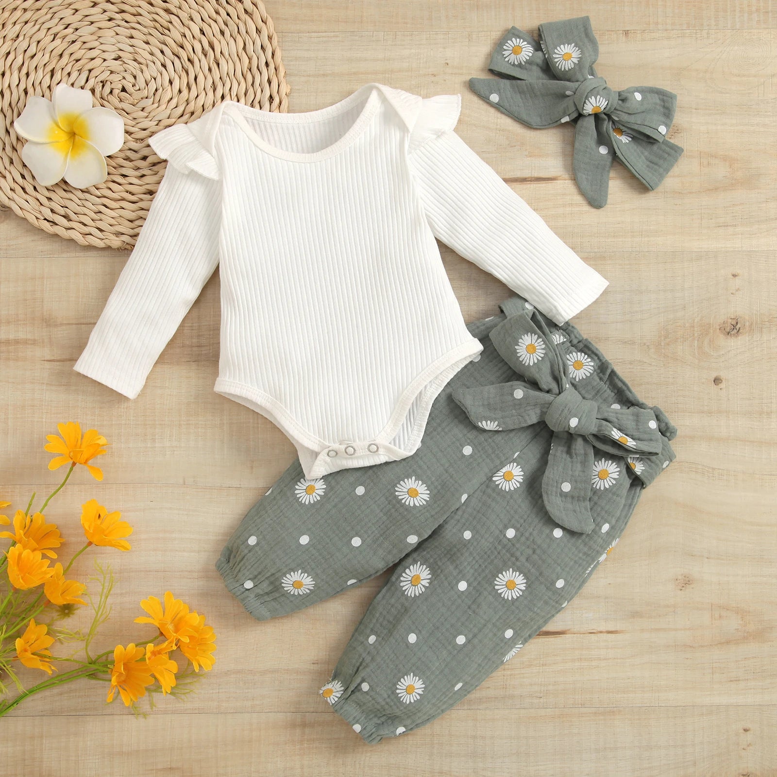 Girl’s 2-Piece Onesies, Pants, & Bow Headband Sets
