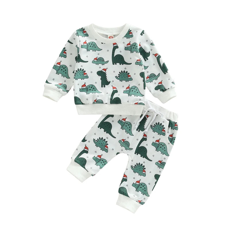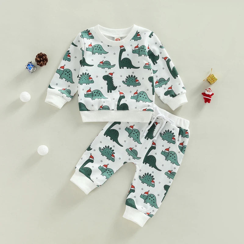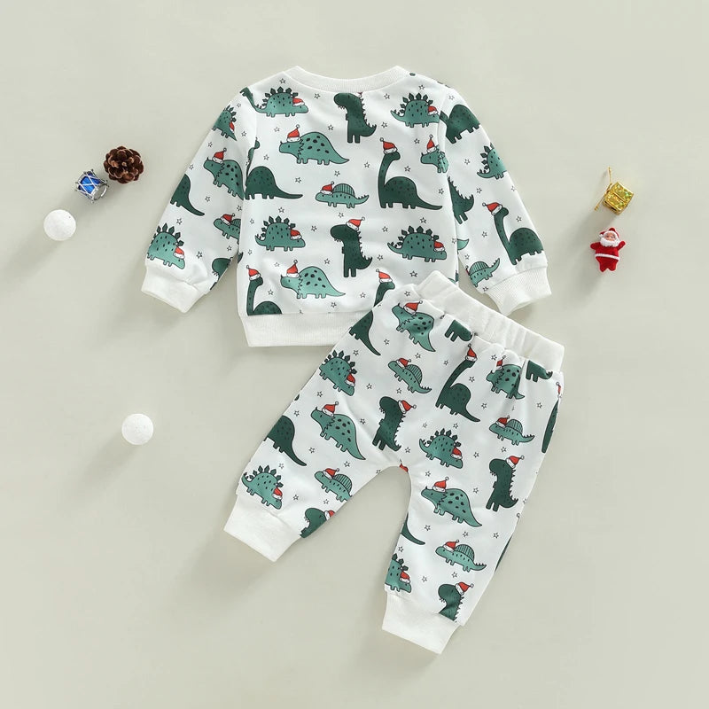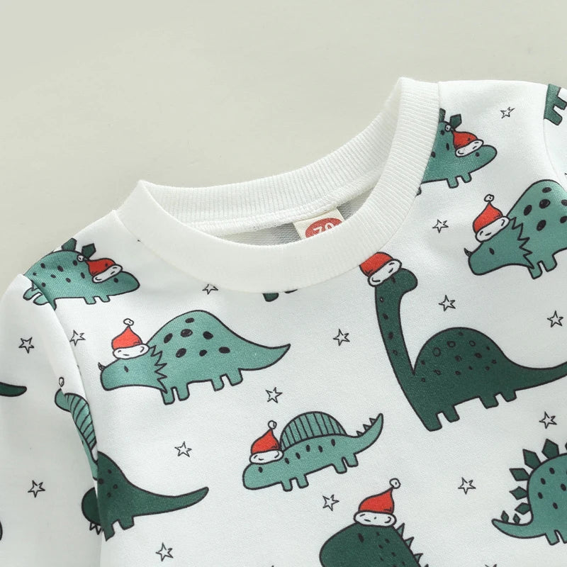 Boy's 2-Piece Christmas Dinosaur Santa Sweatshirt & Pants Sets