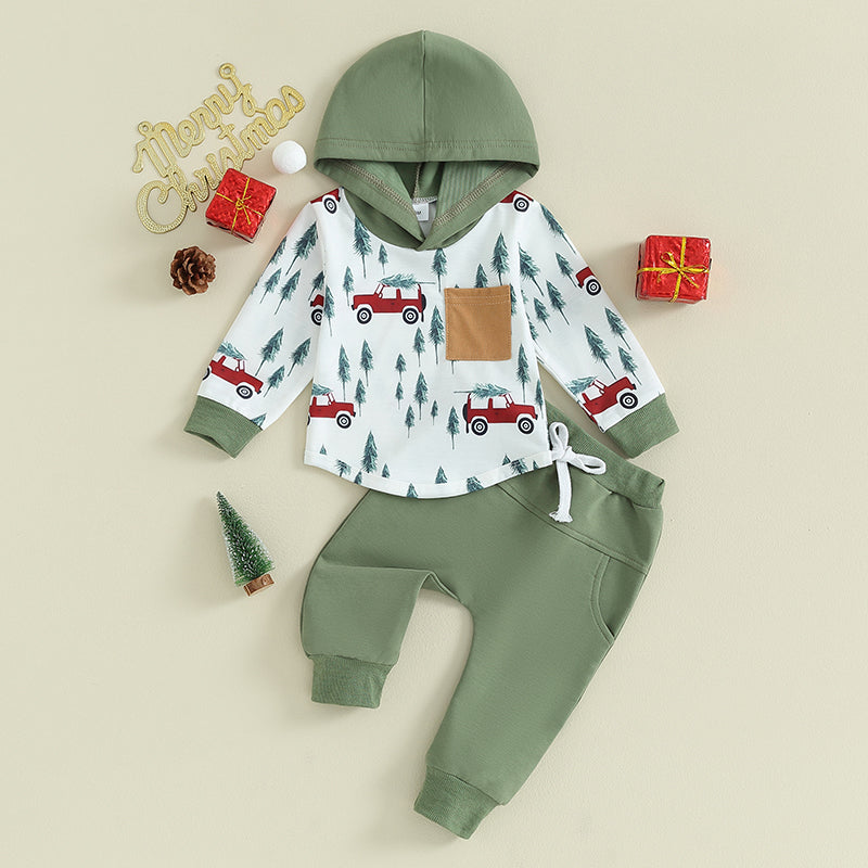 Boy's 2-Piece Christmas Truck & Christmas Tree Hooded Sweatshirt & Pants Sets