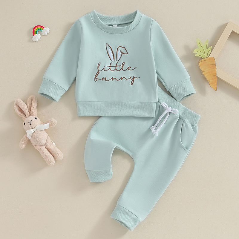 Girl's Easter Bunny Embroidered Sweatshirt & Pants Sets