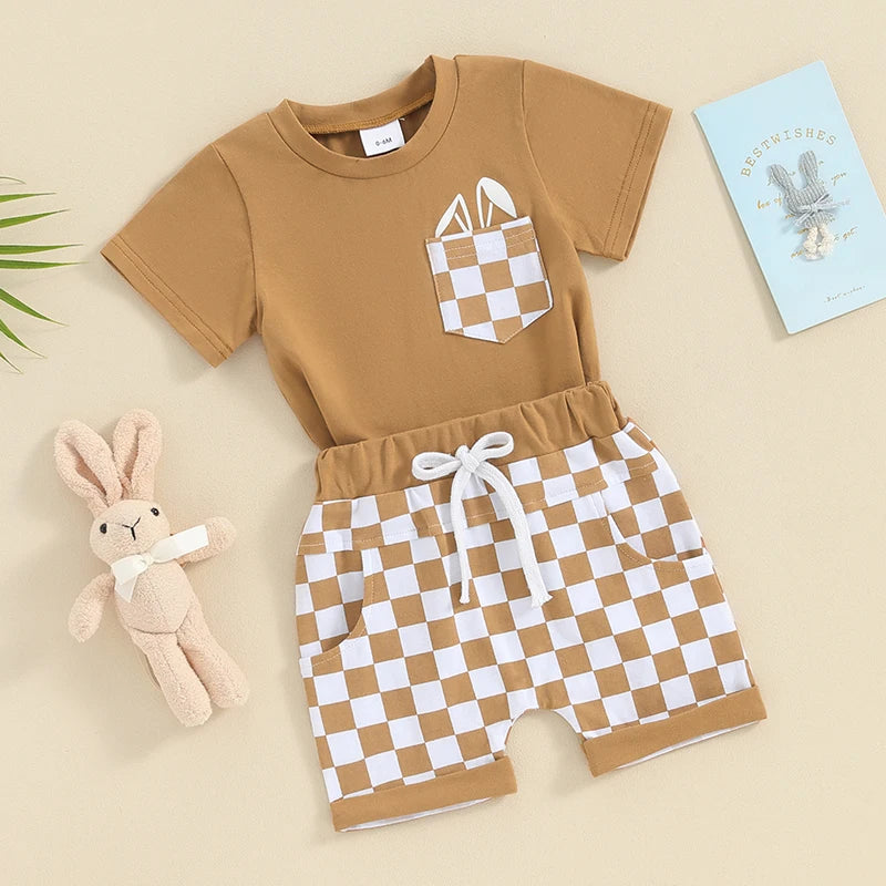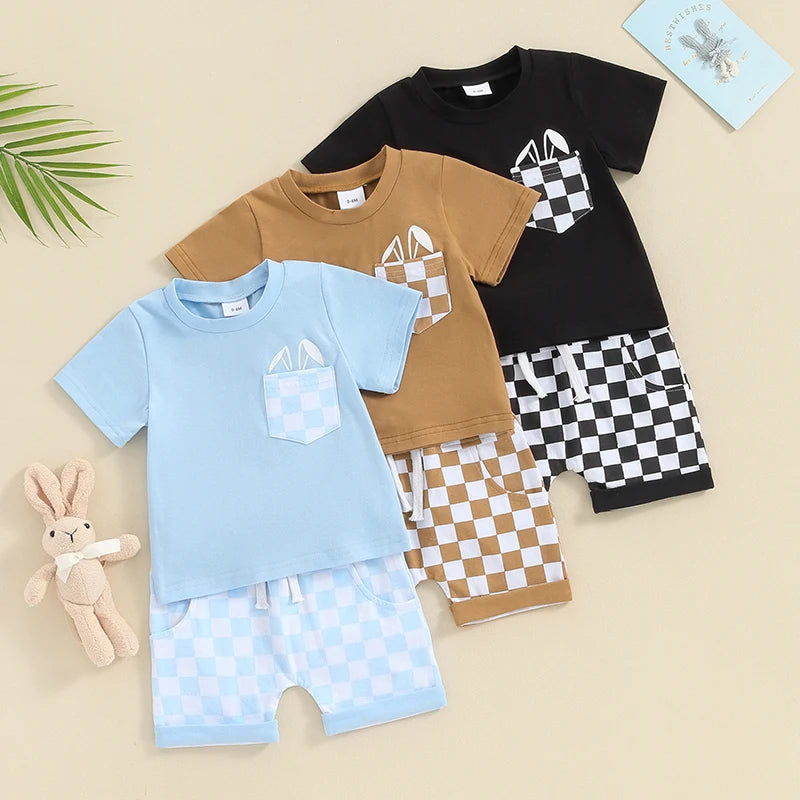 Boy's Easter Set Plaid T-Shirt & Shorts Sets