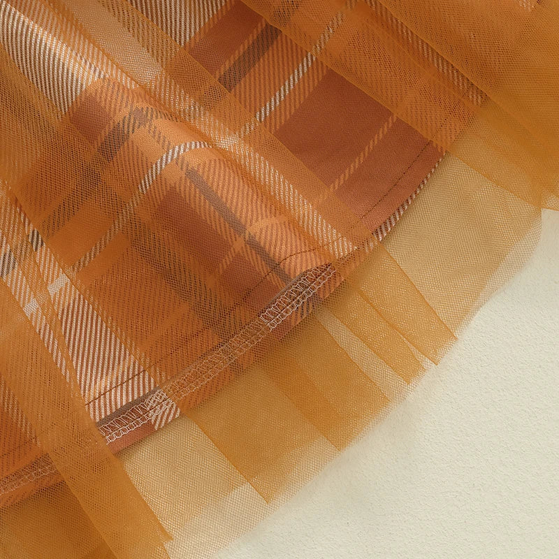 Girl's 2-Piece Embroidered "Little Turkey" Thanksgiving Sweatshirt & Plaid Tulle Skirt Sets