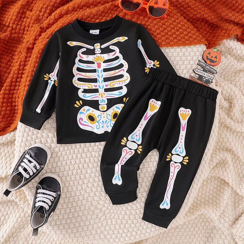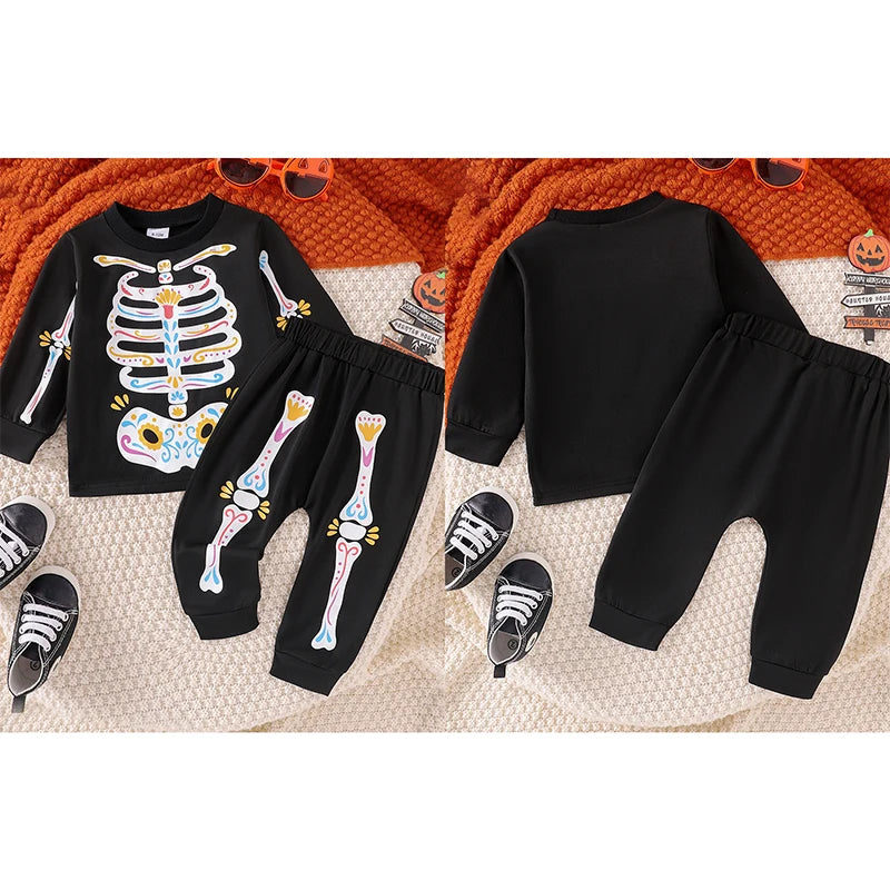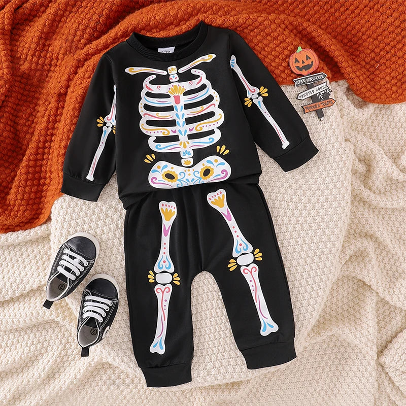 Girl's Halloween 2-Piece Candy Skeleton Sweatshirt & Pants Sets