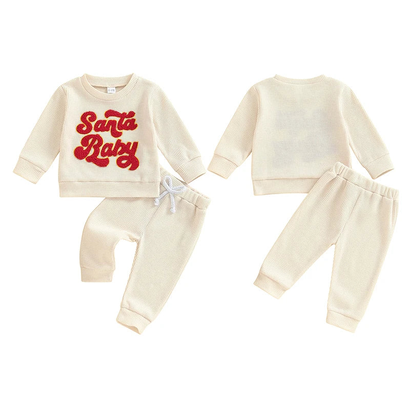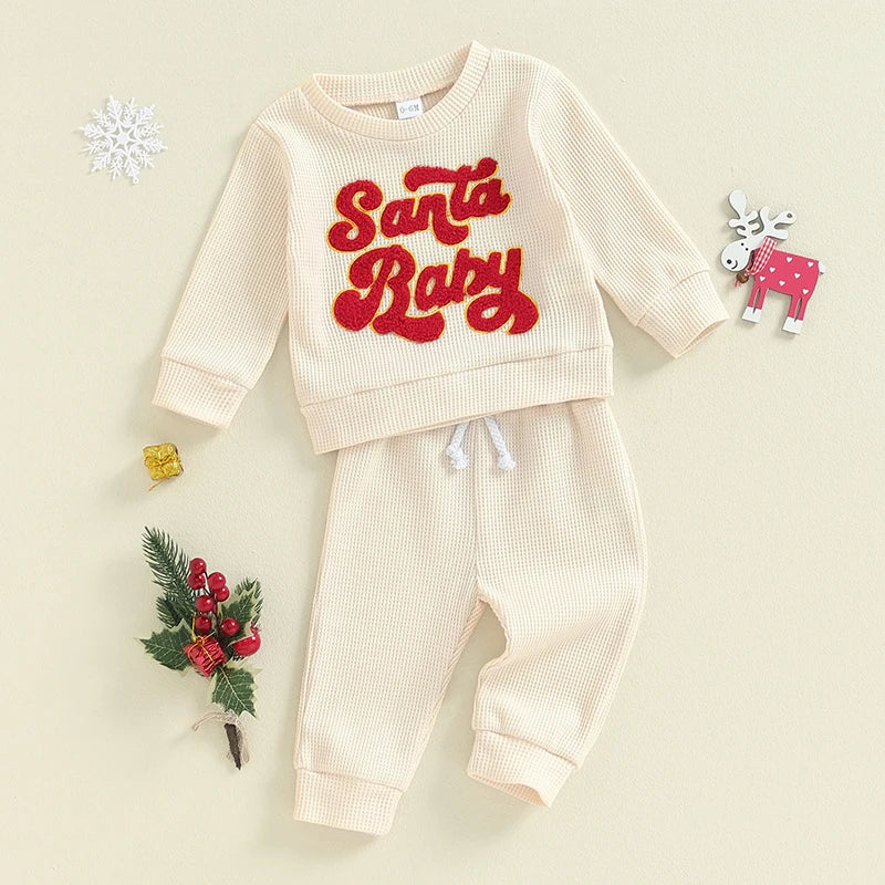 Boy's & Girl's 2-Piece Christmas Embroidered "Santa Baby" Sweatshirt & Pants Sets