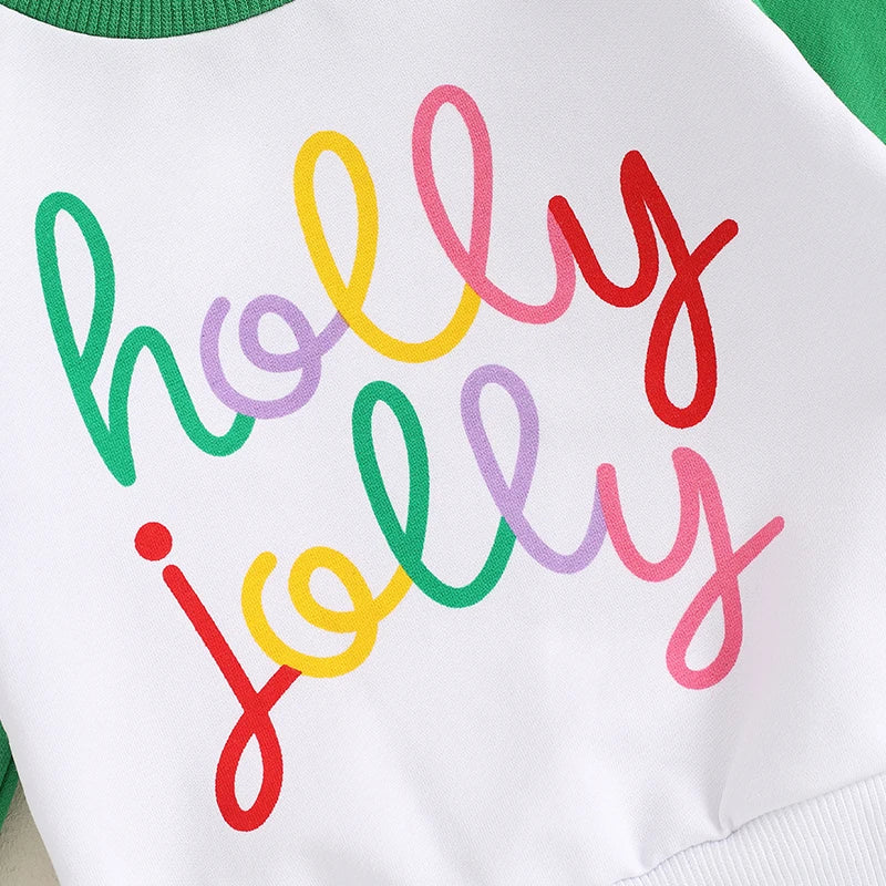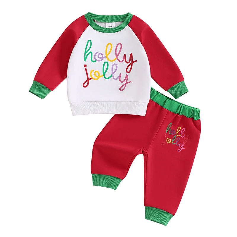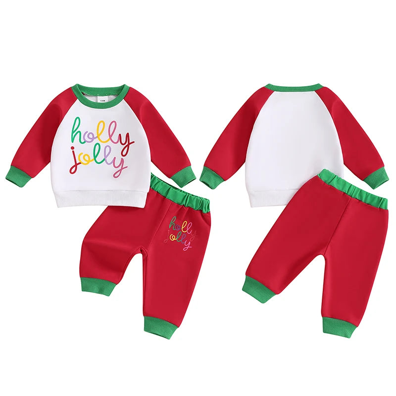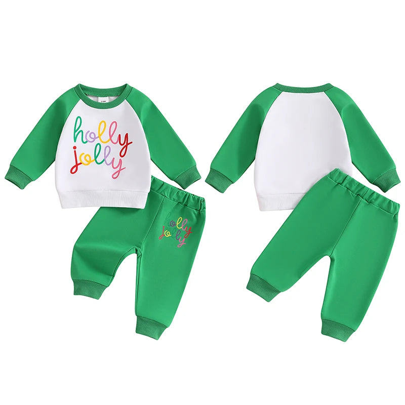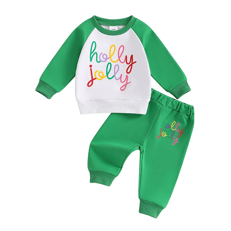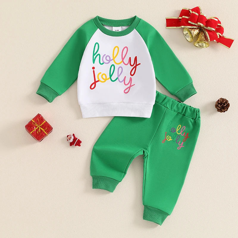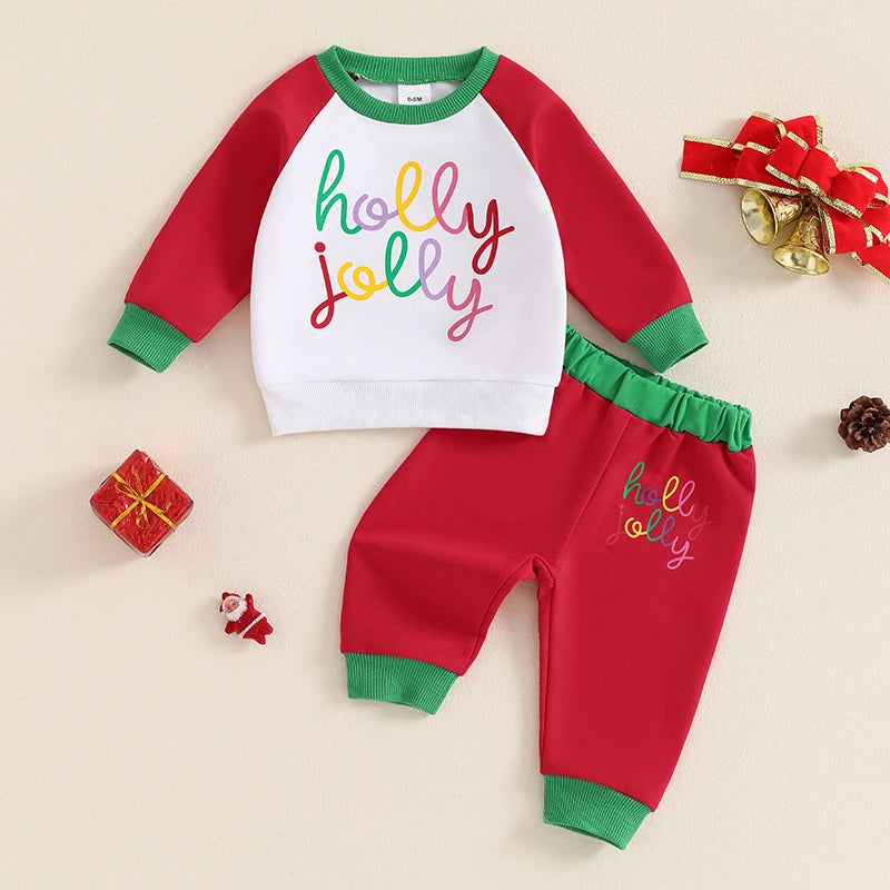 Boy's & Girl's 2-Piece Christmas "Holly Jolly" Sweatshirt & Pants Sets