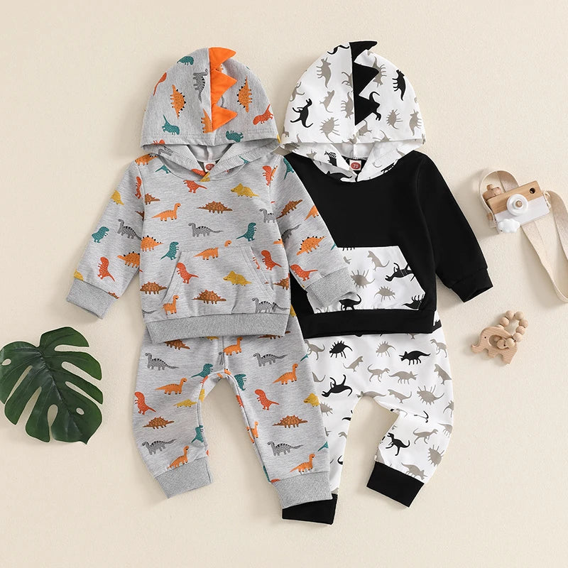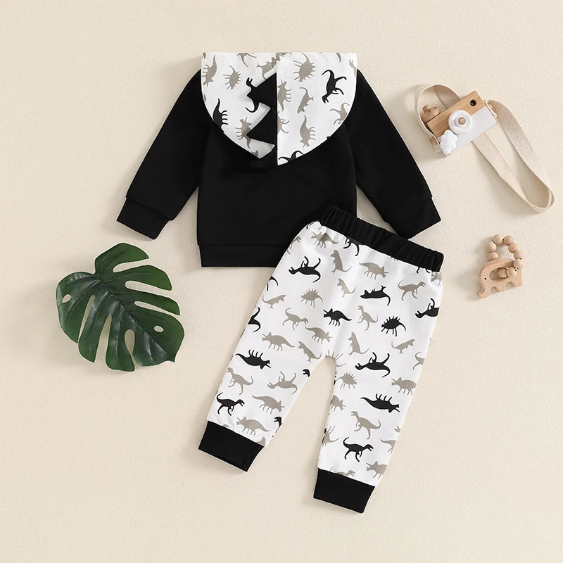 Boy's 2-Piece Hooded Dinosaur Sweatshirt & Pants Sets
