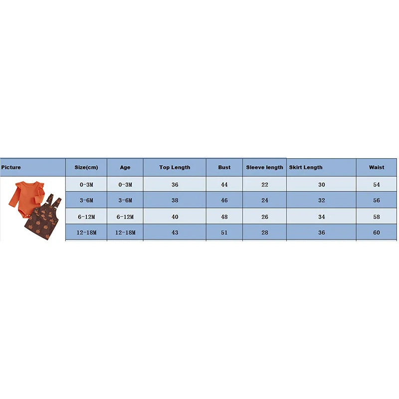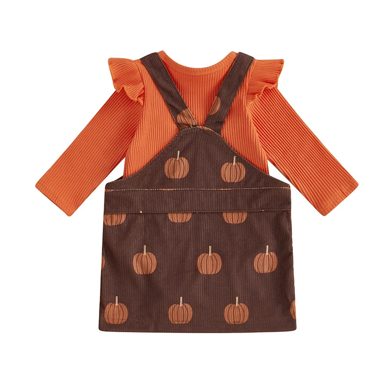 Girl's Halloween 2-Piece Ruffled Ribbed Onesie & Pumpkin Bib Overall Skirts Sets