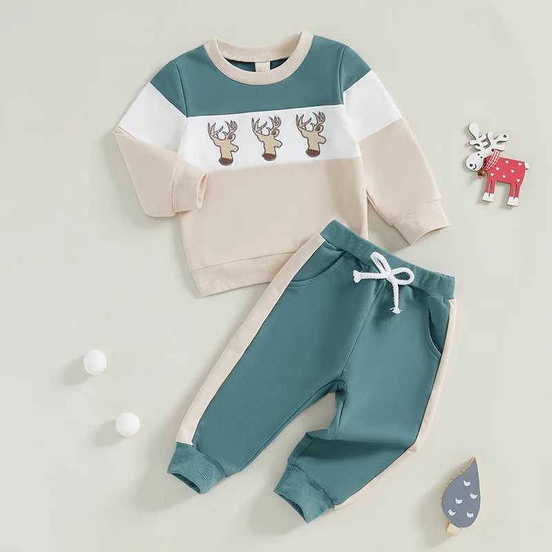 Boy's 2-Piece Embroidered Deer & Duck Hunting & Fishing Sweatshirt & Pants Sets