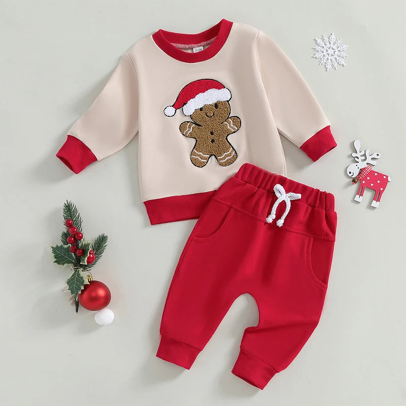 Boy's & Girl's 2-Piece Christmas Embroidered Gingerbread Man Holiday Sweatshirt & Pants Sets