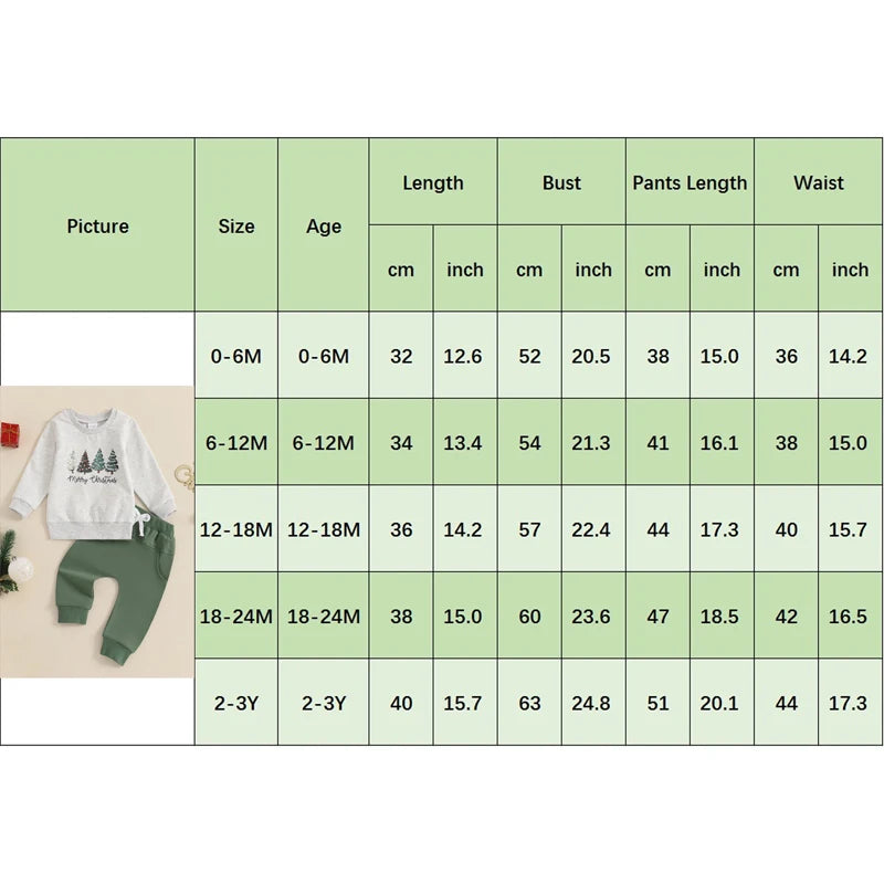 Boy's 2-Piece Christmas "Merry Christmas" Trees Sweatshirt & Pants Sets