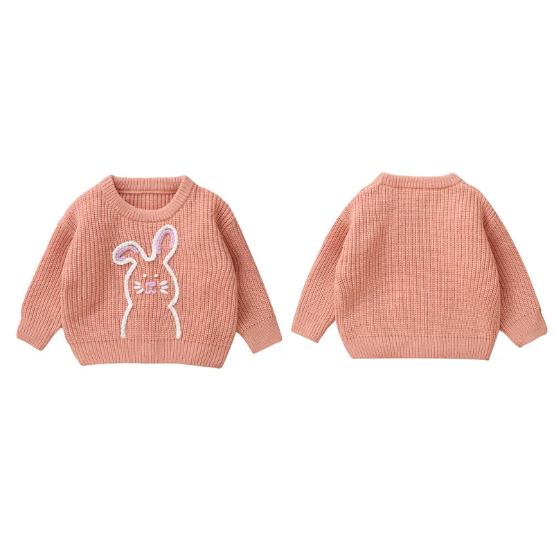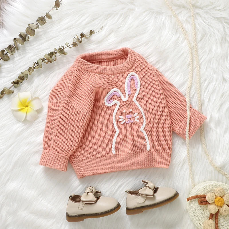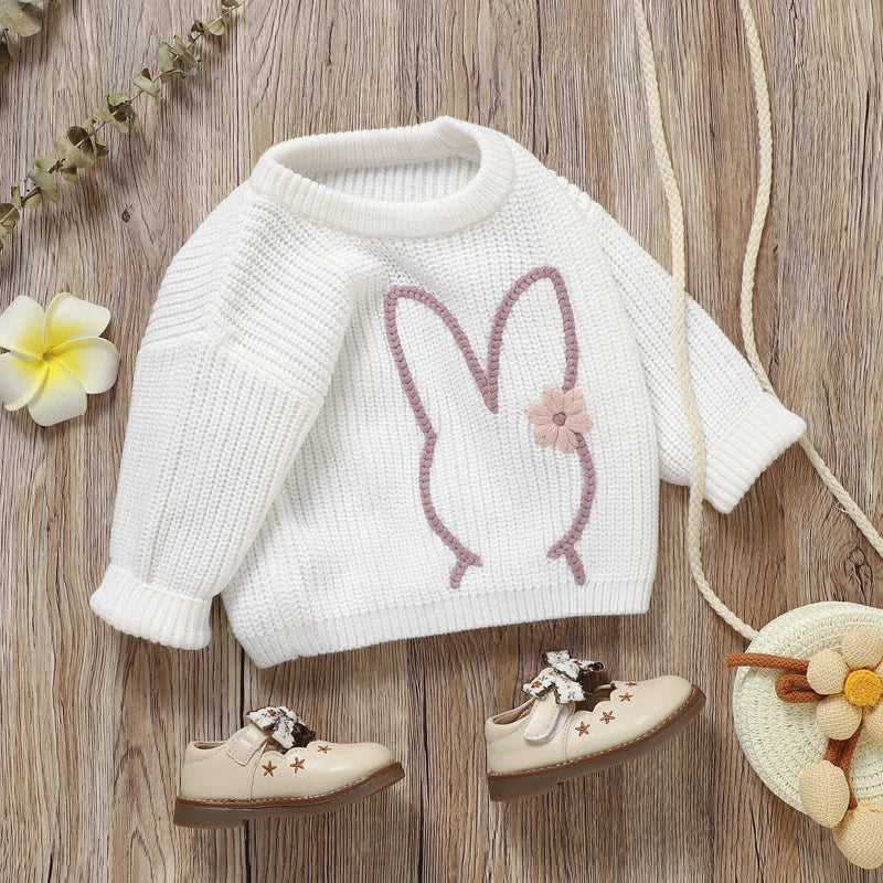 Girl's Embroidered Easter Bunny Knit Sweaters
