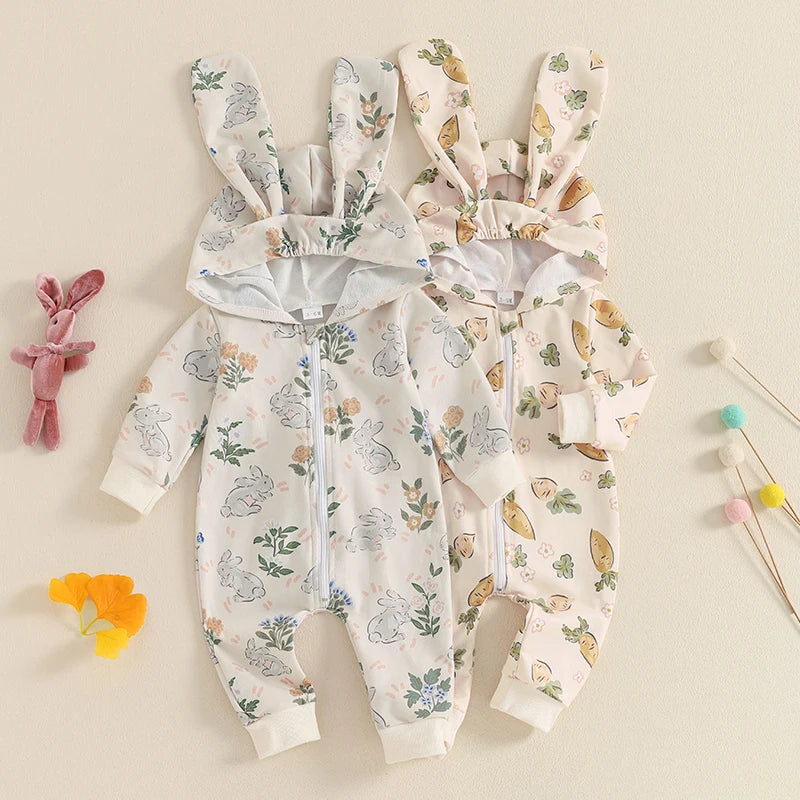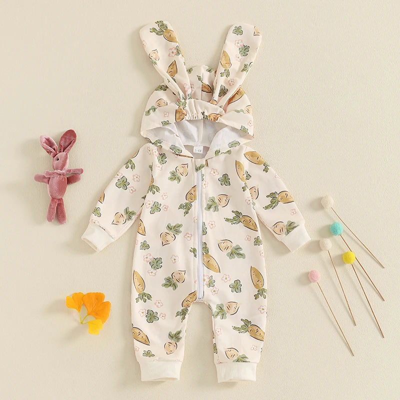 Girl's & Boy's Easter Carrot/Rabbit Hooded Jumpsuits