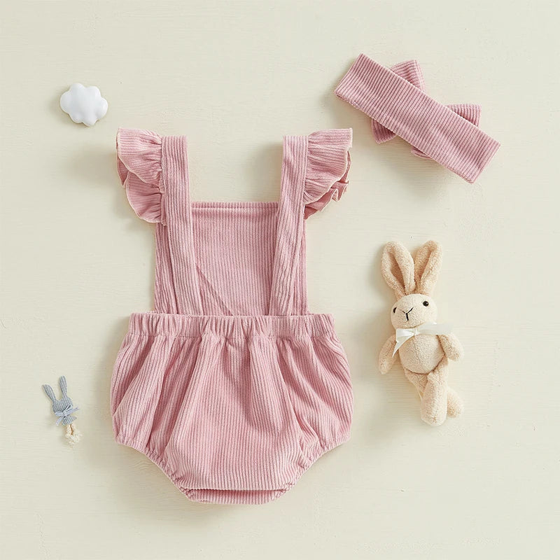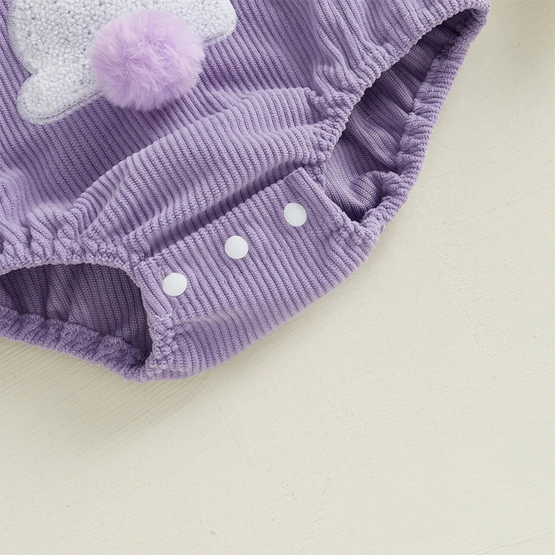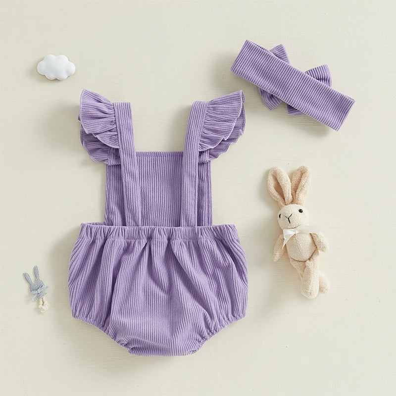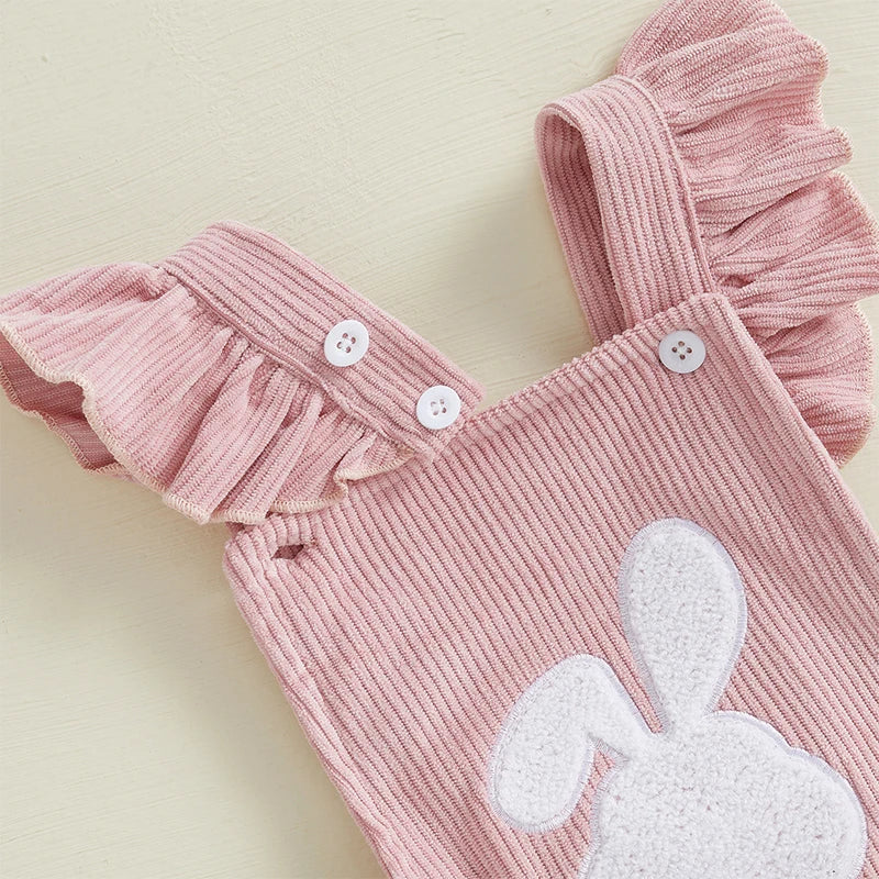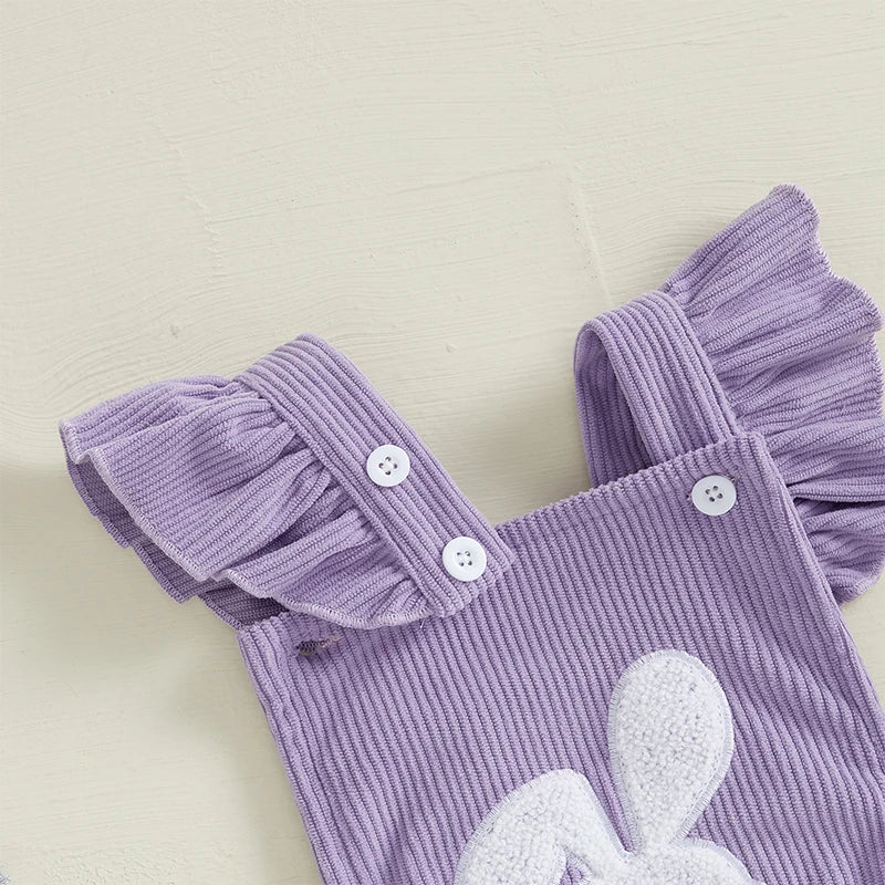 Girl's Fly Sleeve Embroidered Easter Bunny Romper & Headband Sets