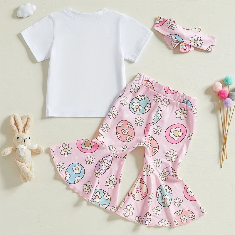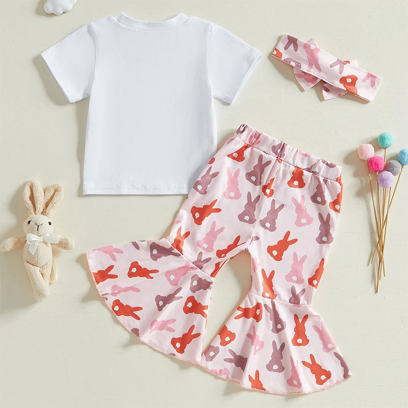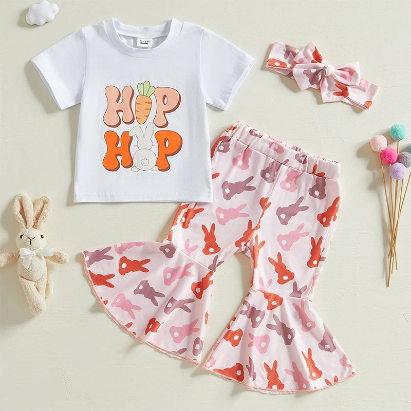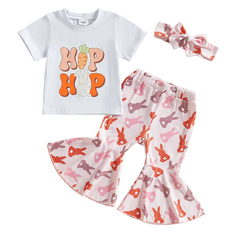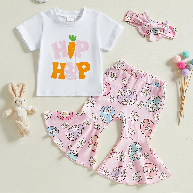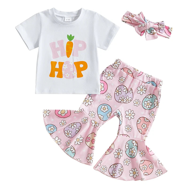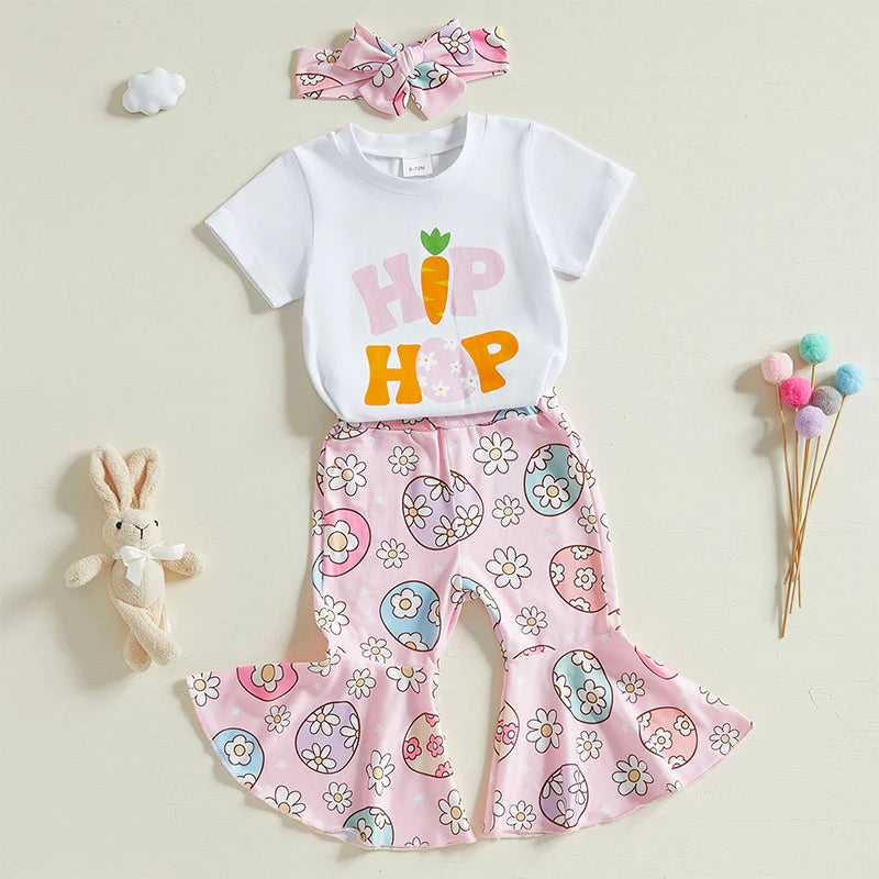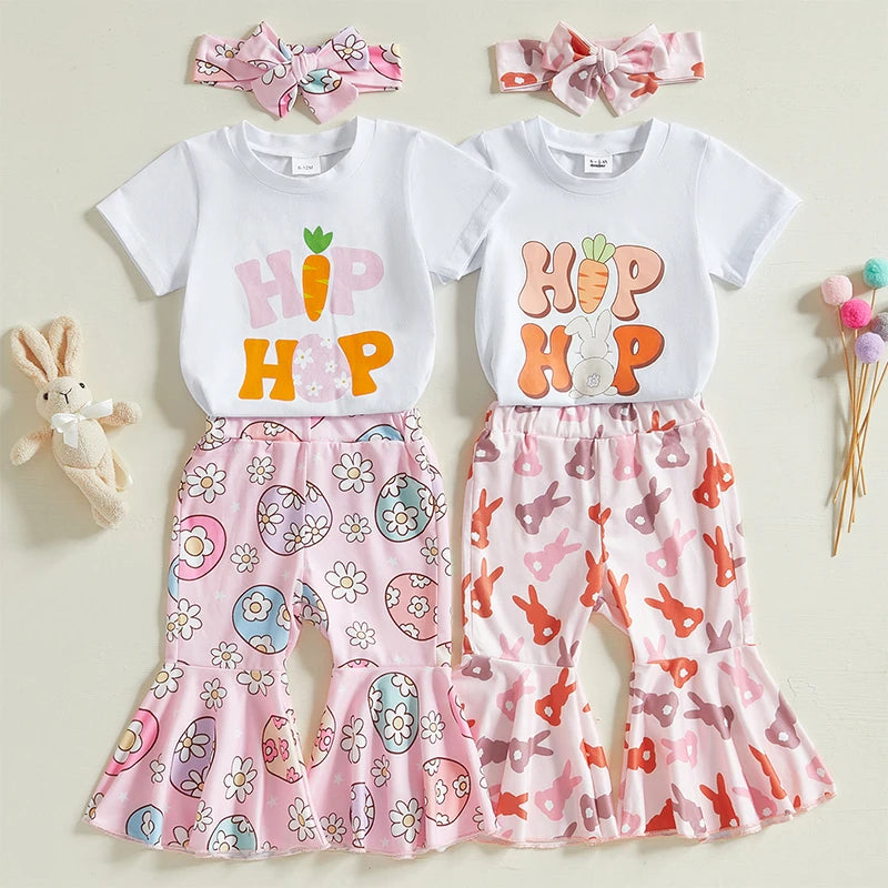 Girl's "Hip Hop" Easter T-Shirts, Flare Pants & Bow Headband Sets