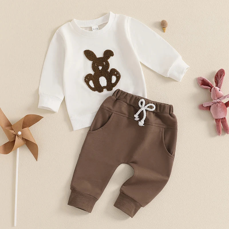 Boy's Easter Bunny Embroidered Sweatshirts & Pants