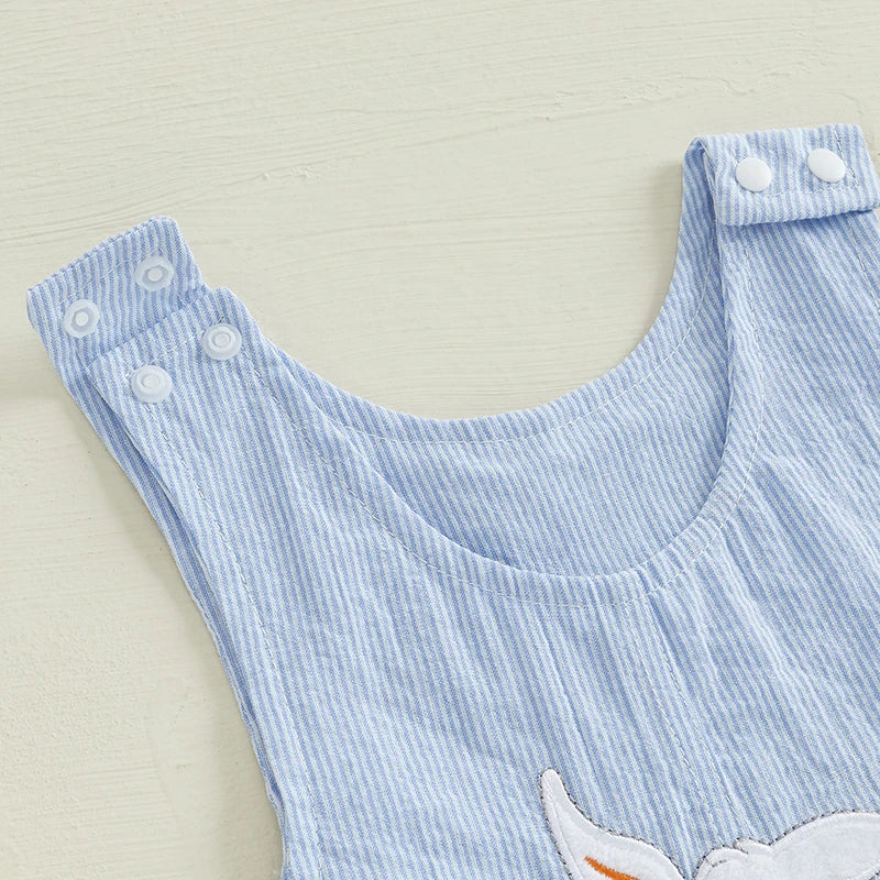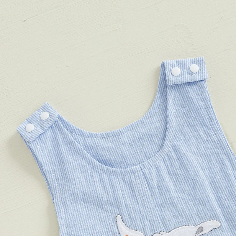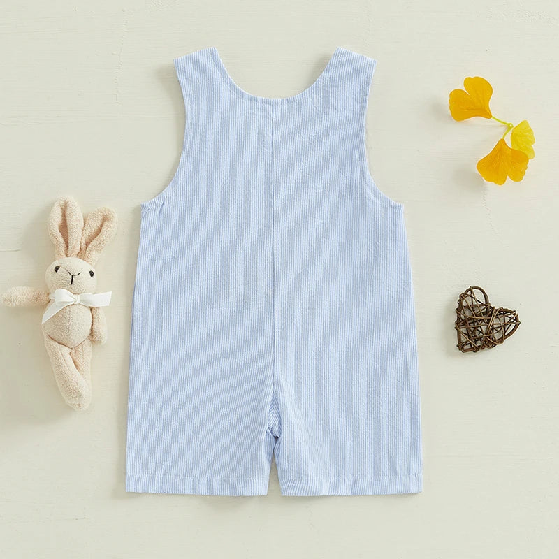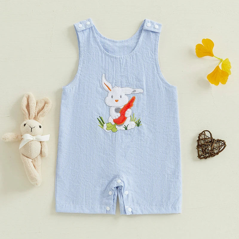 Girl's & Boy's Striped Embroidered Easter Bunny, Truck, Carrot Overall Jumpsuits
