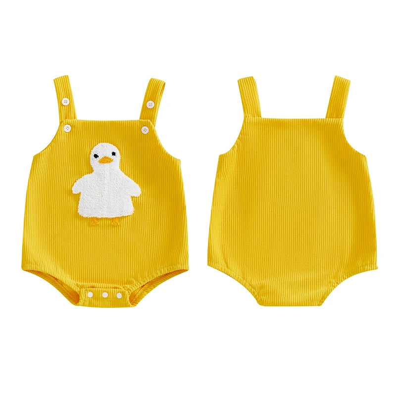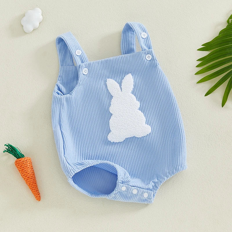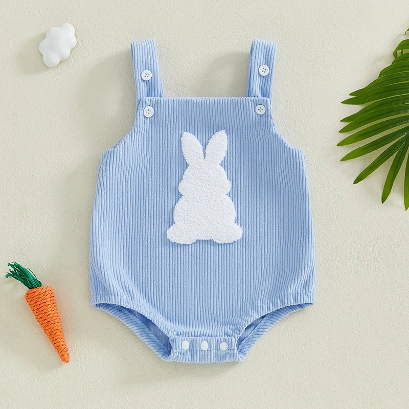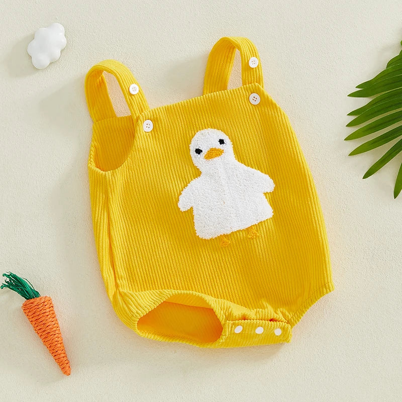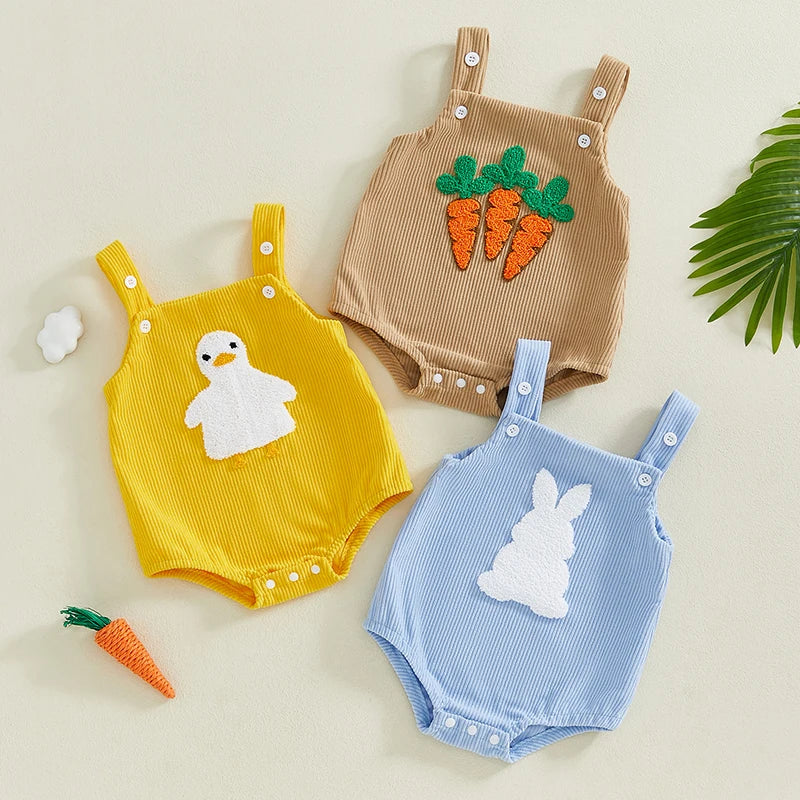 Boy's & Girl's Fuzzy Embroidered Easter Romper Overalls