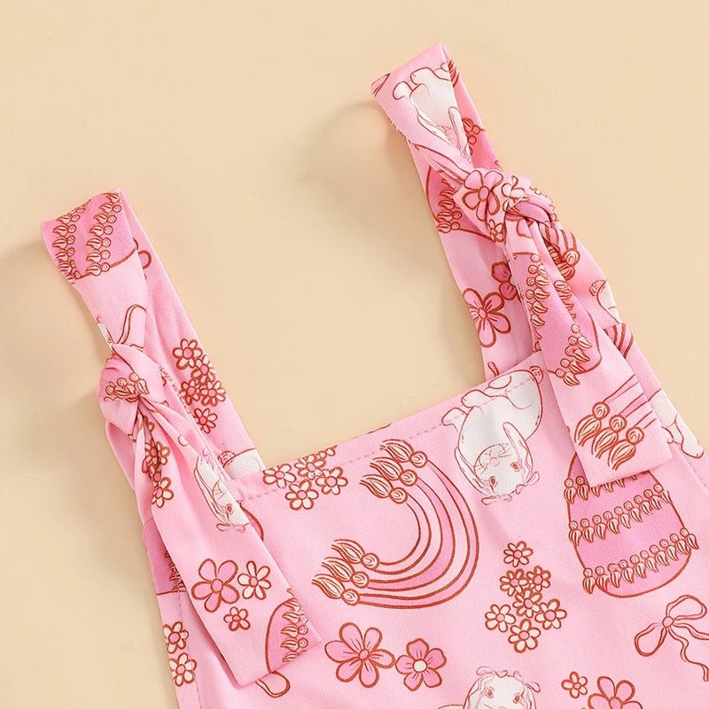 Girl's Sleeveless Easter Floral Jumpsuit & Suspender Pants Sets