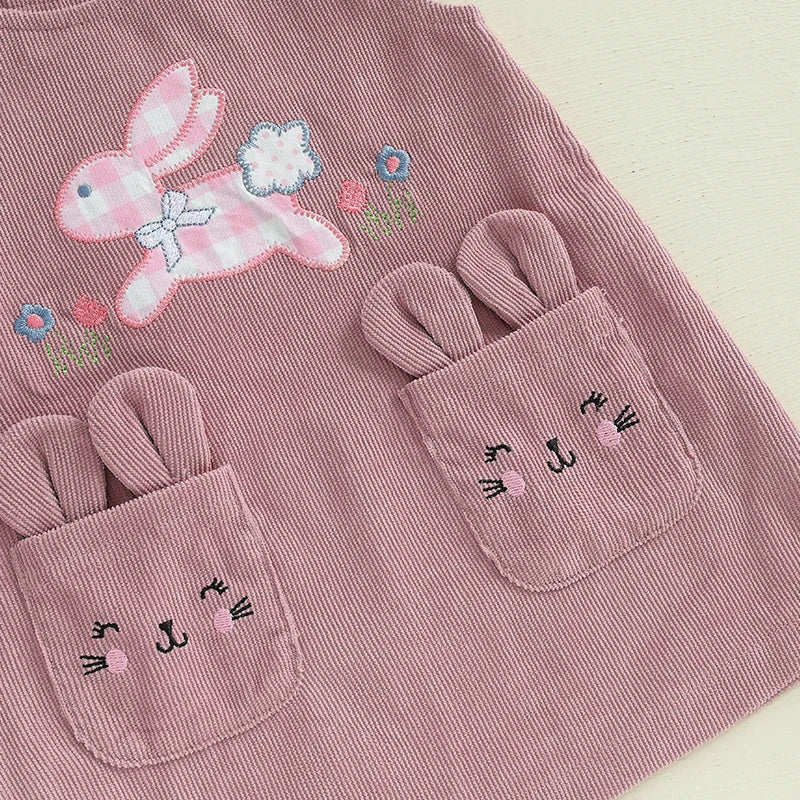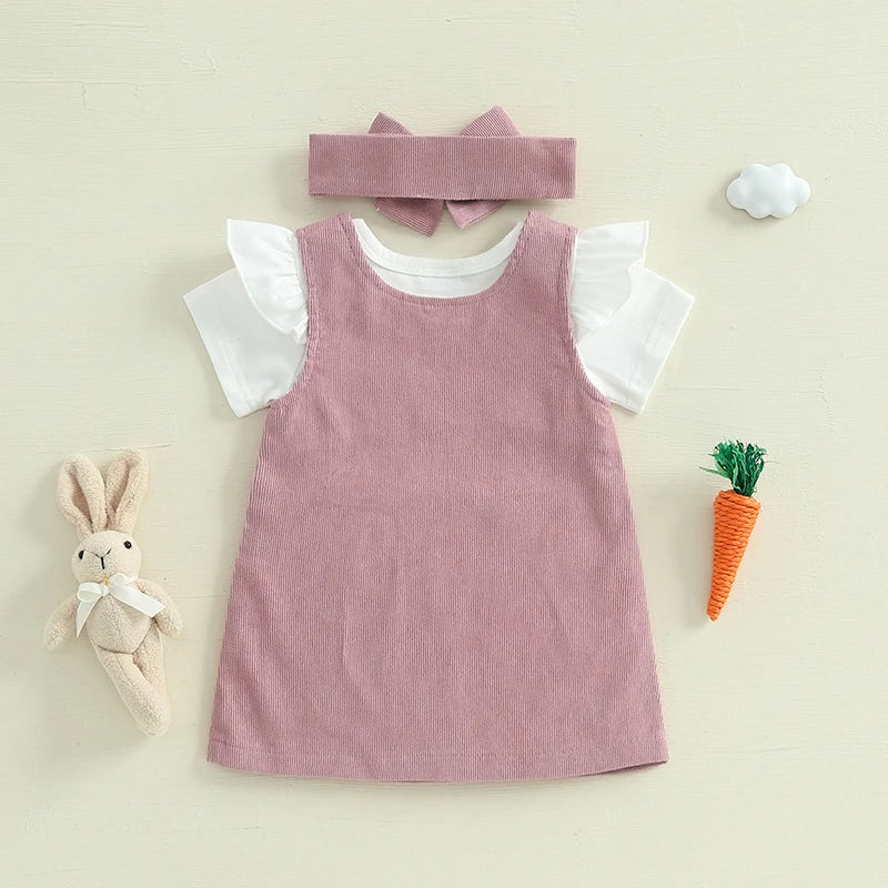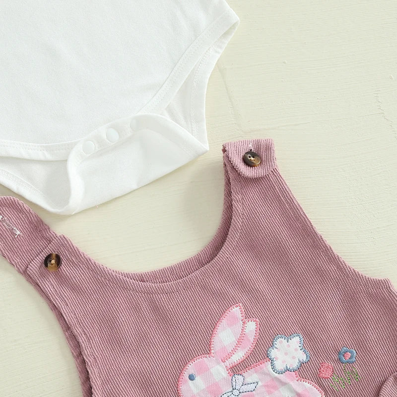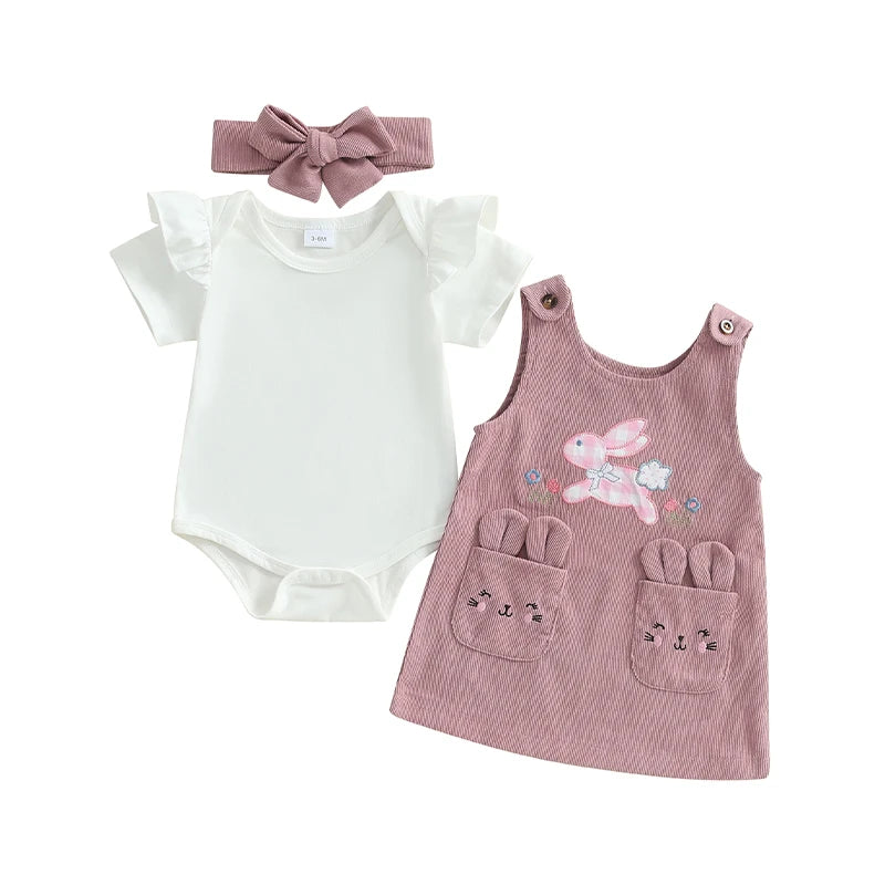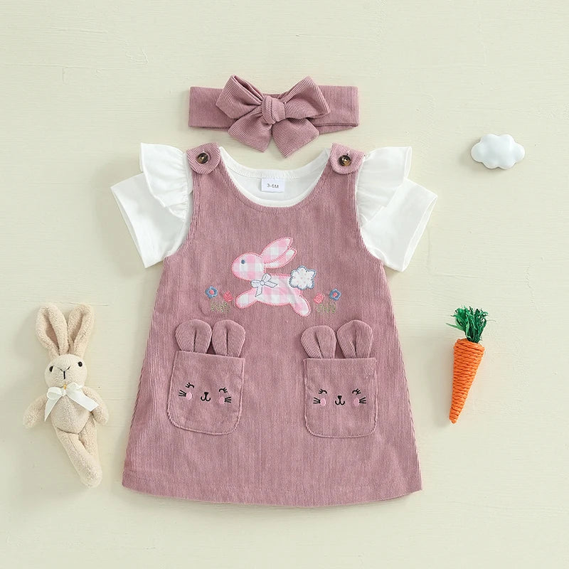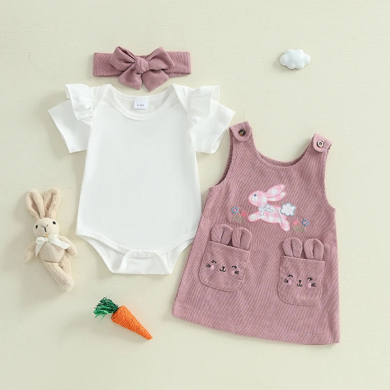 Girl's Easter Bunny Romper Overall Dress & Tie-up Headband Set