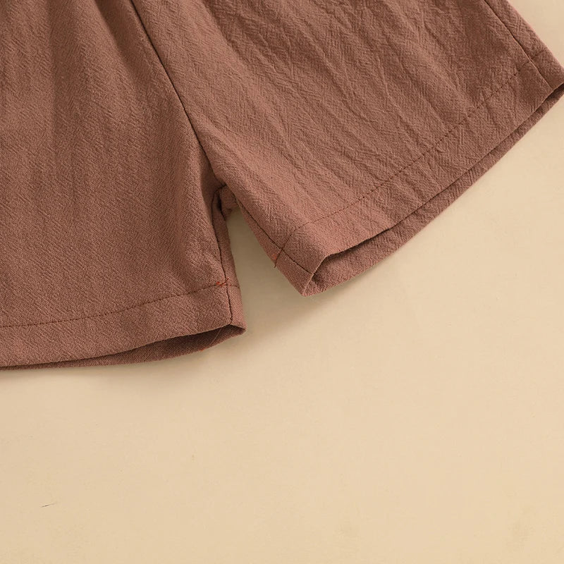 Each size sold separately and includes one outfit (1 shirt + 1 pair of shorts). Comfortable cotton, polyester, elastane blend.