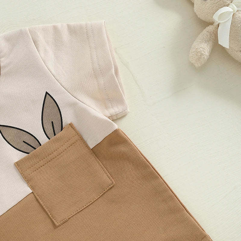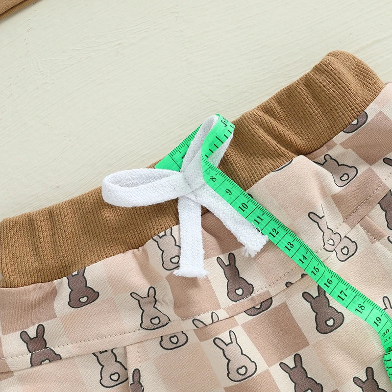 Boy's Easter Contrast Color T-Shirt & Bunny Plaid Shorts Set