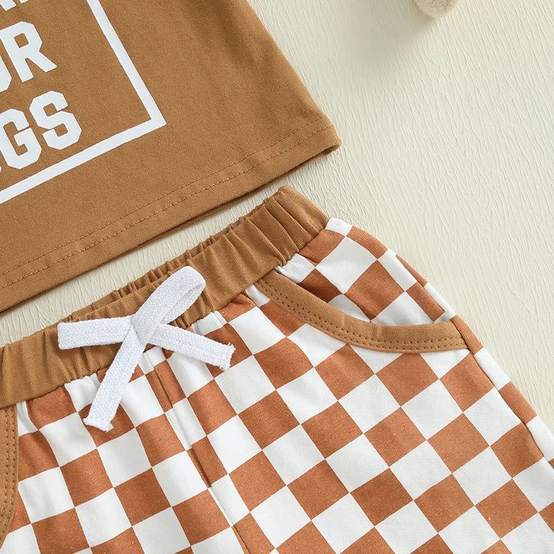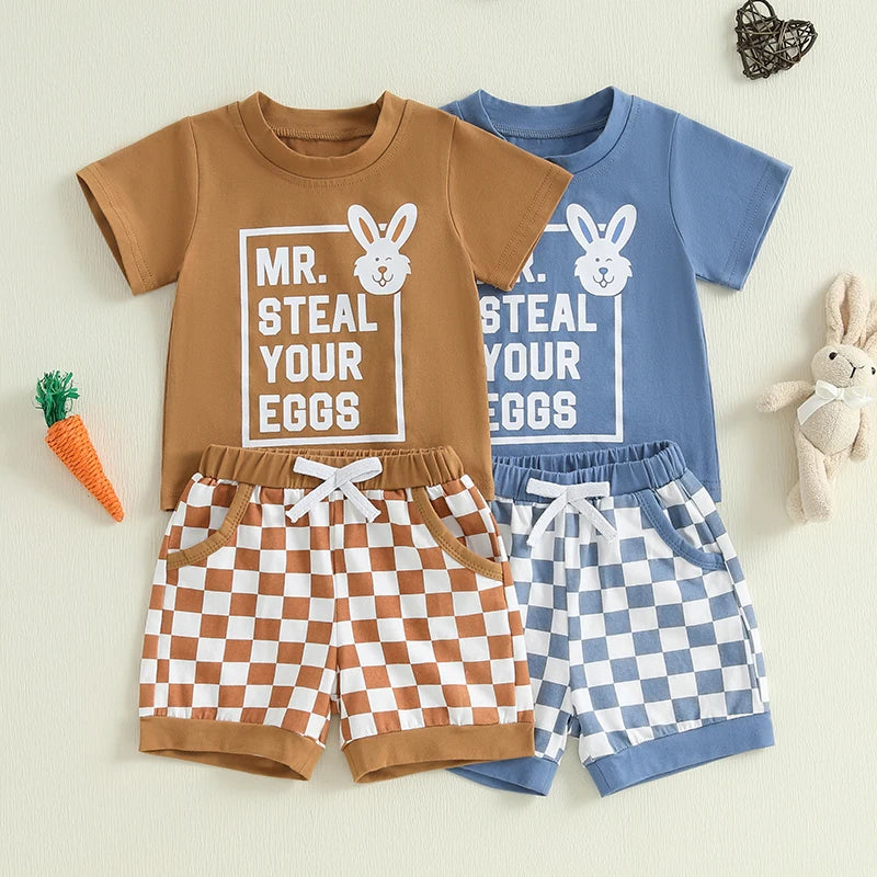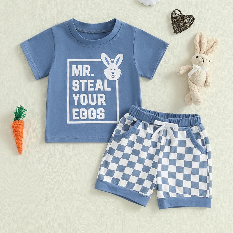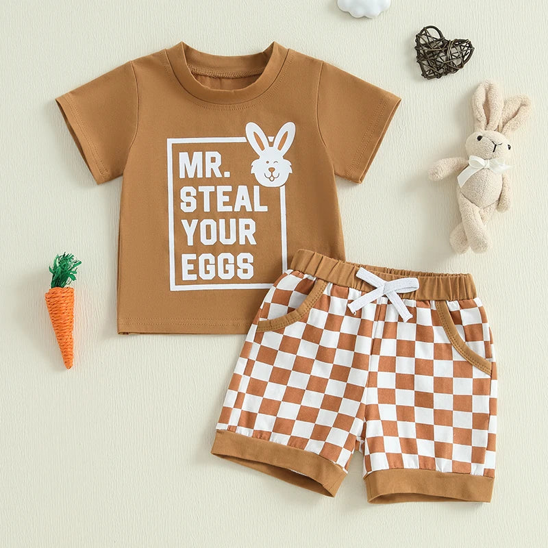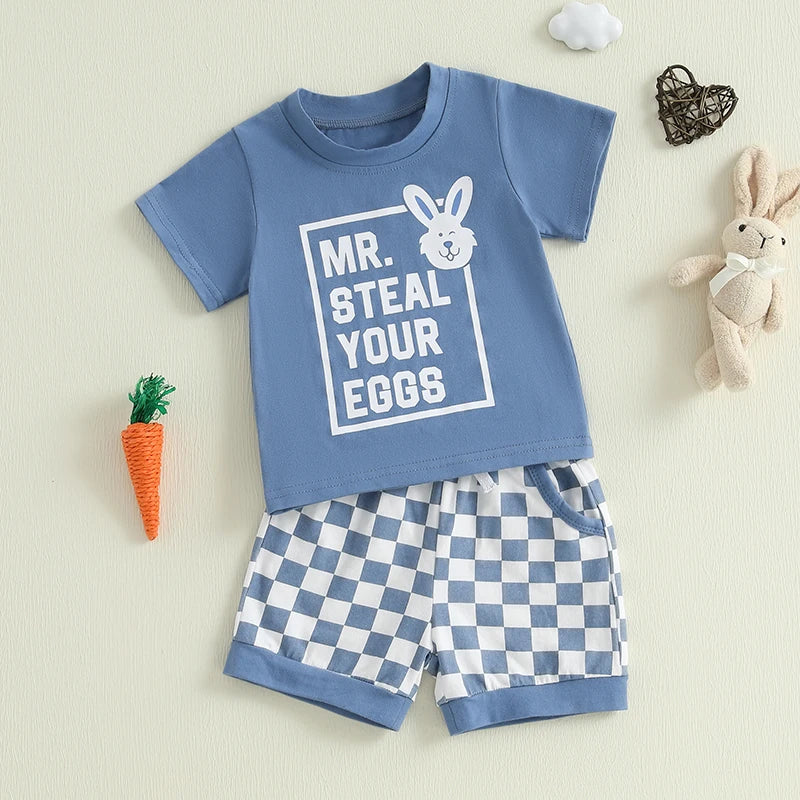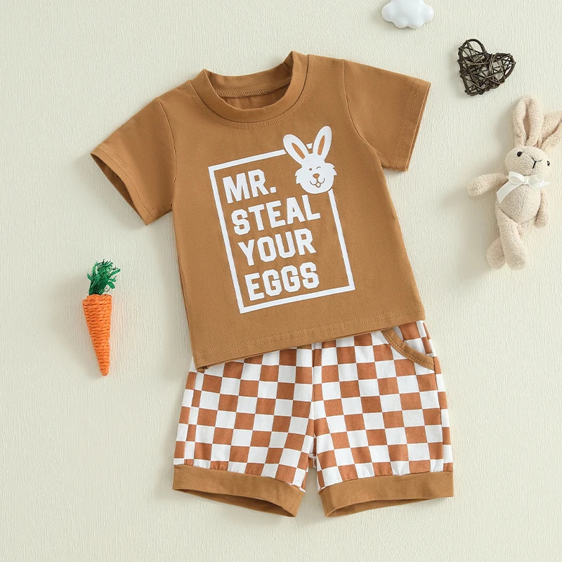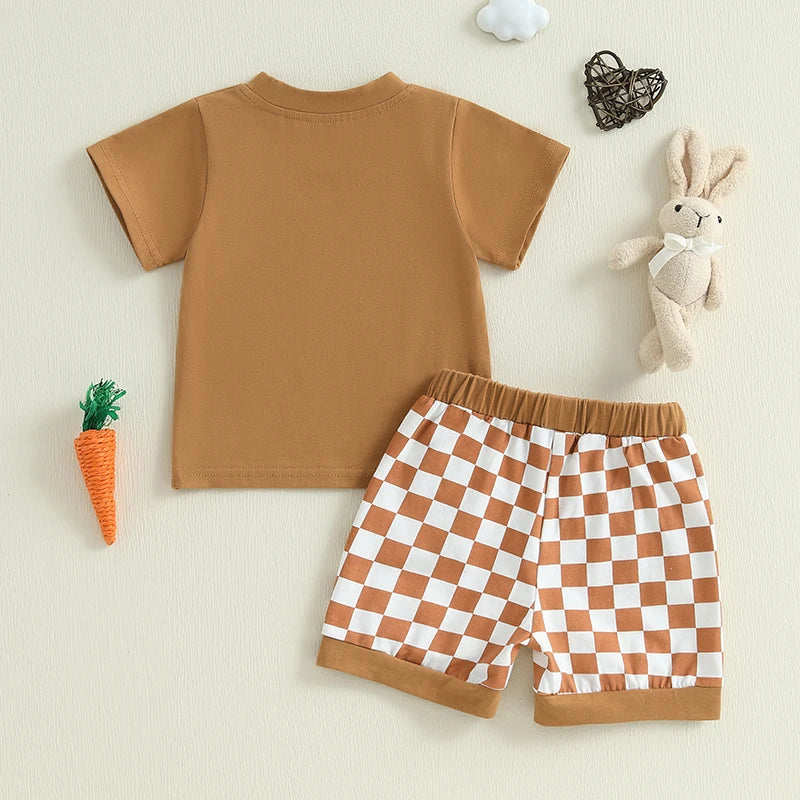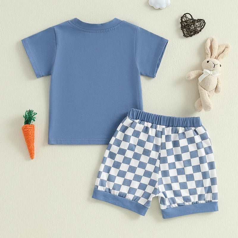 Boy's Easter Bunny T-shirt & Checkered Shorts Set