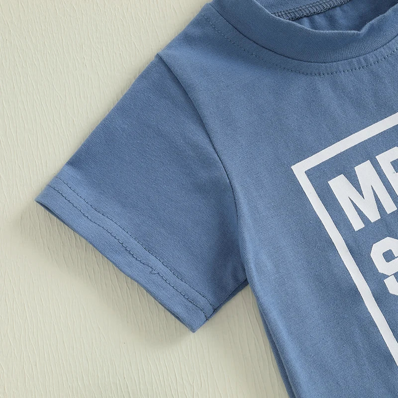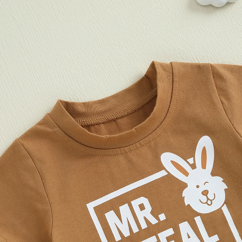 Each size sold separately and includes one outfit (1 T-shirt + 1 pair of shorts). Materials Cotton, Elastane. Pattern Bunny Letter Print. Color Blue/Khaki. Gender Boy.