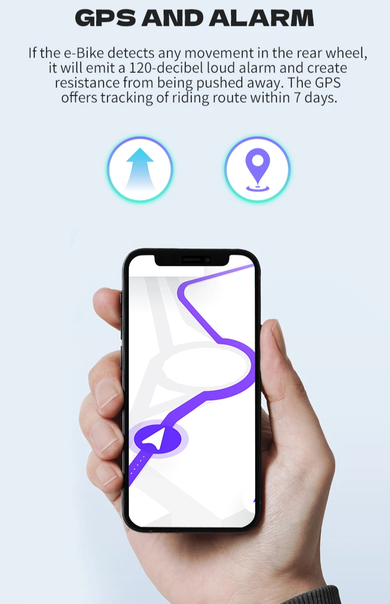 | Anti-theft alarm | bicycle detects any movement on the rear wheel, sounds an alarm and generates resistance |