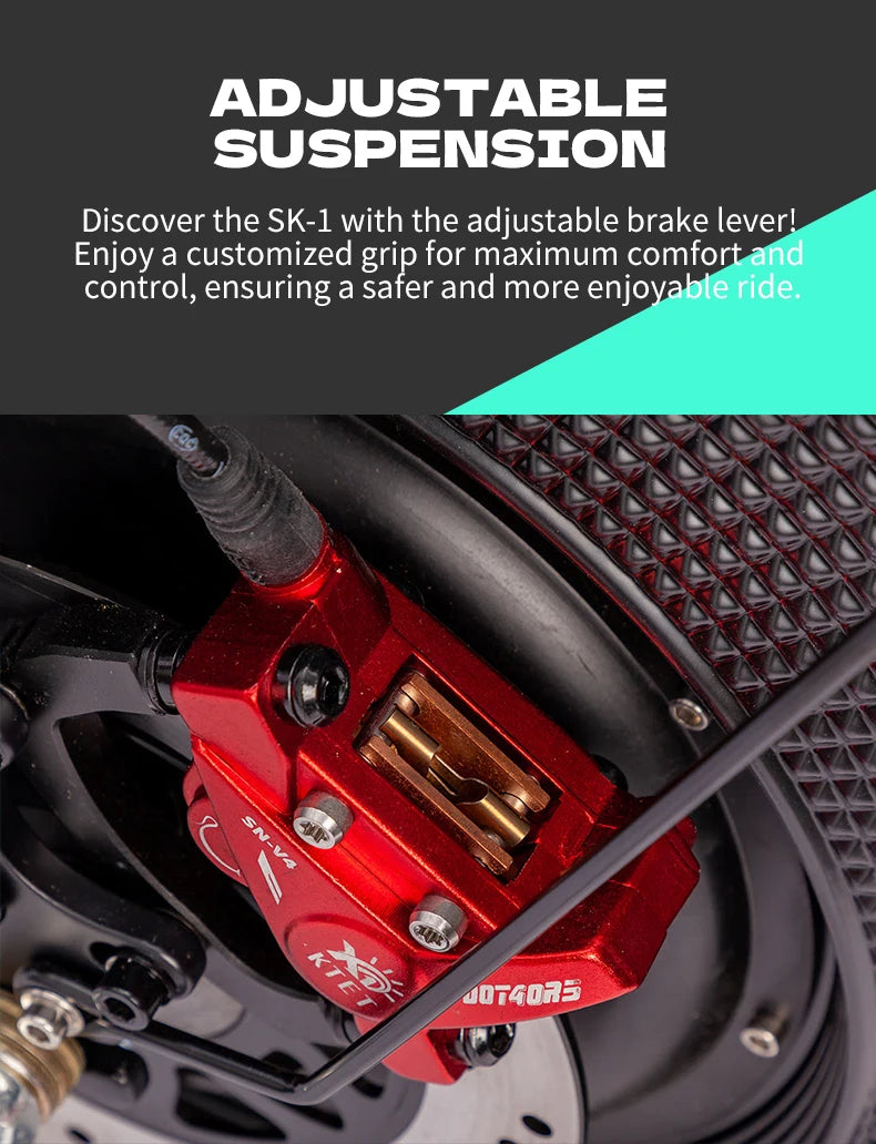 | Brake system | Hydraulic disc brake, large dual pump 4-piston oil discs at the front and rear, adjustable brake levers |
