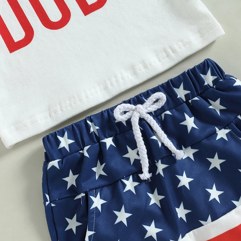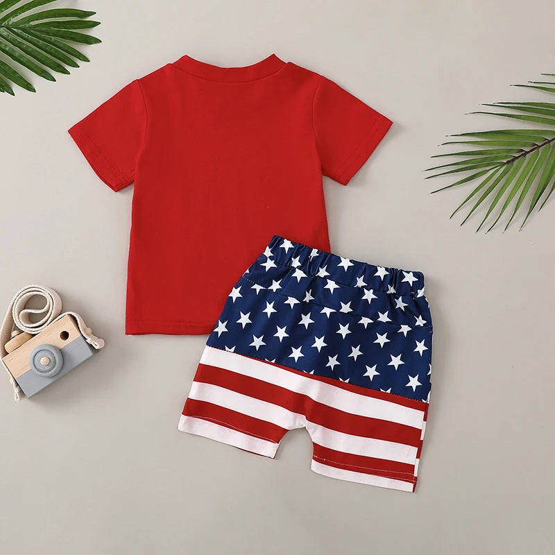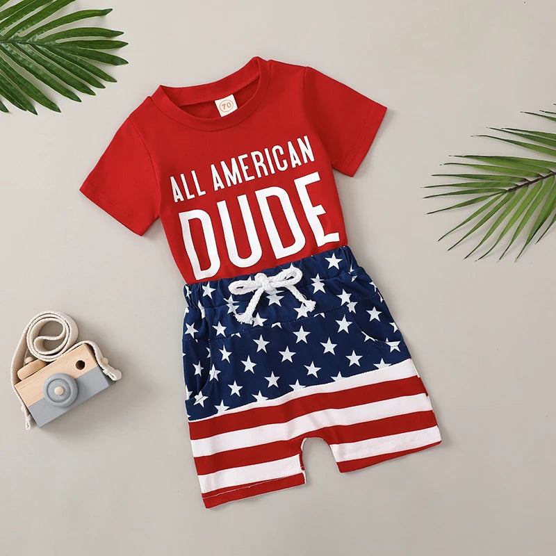 Boy's 2-Piece "All American Dude" 4th of July T-Shirts & Flag Shorts Sets