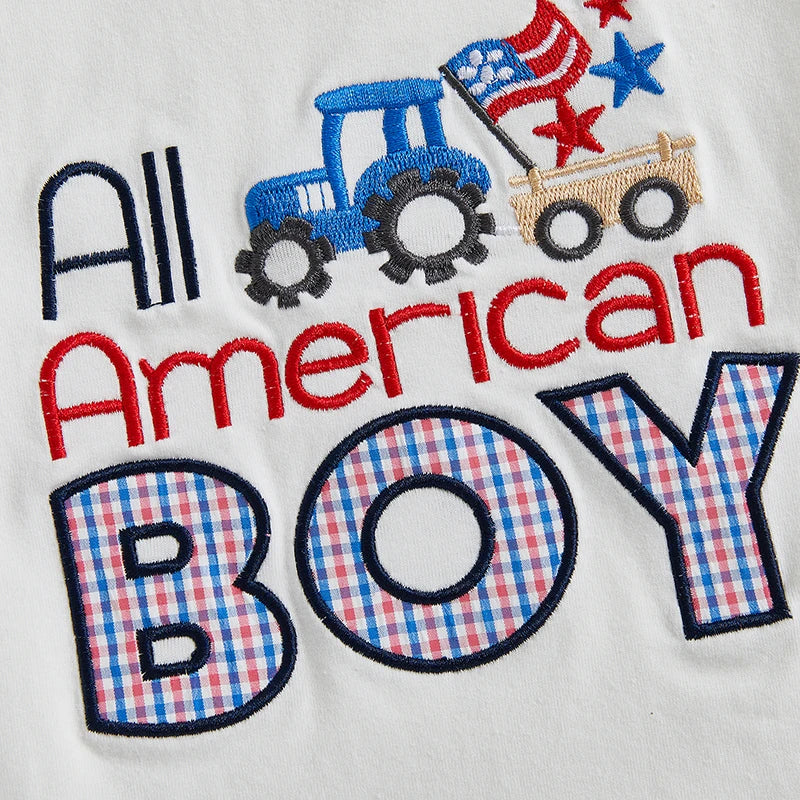 Pattern: Letter, Tractor, USA, America, Independence Day, 4th of July, Embroidered, Plaid