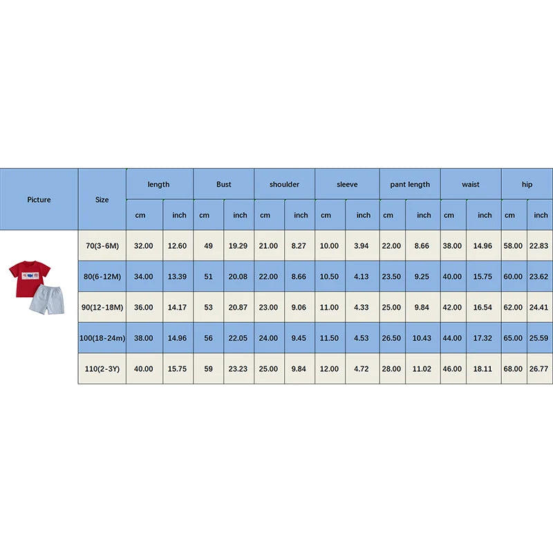 Each size sold separately and includes 1 outfit (1 T-shirt + 1 pair of shorts).