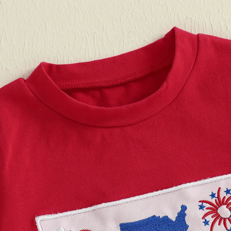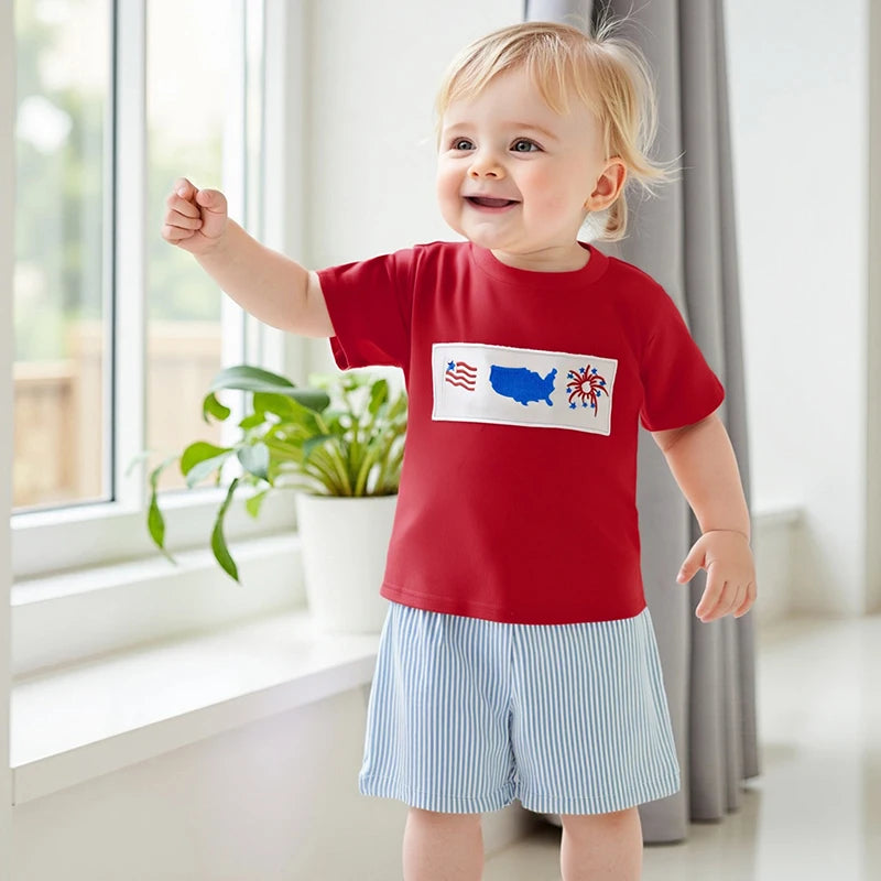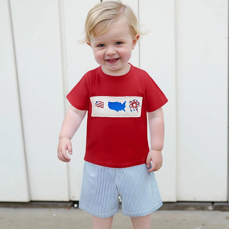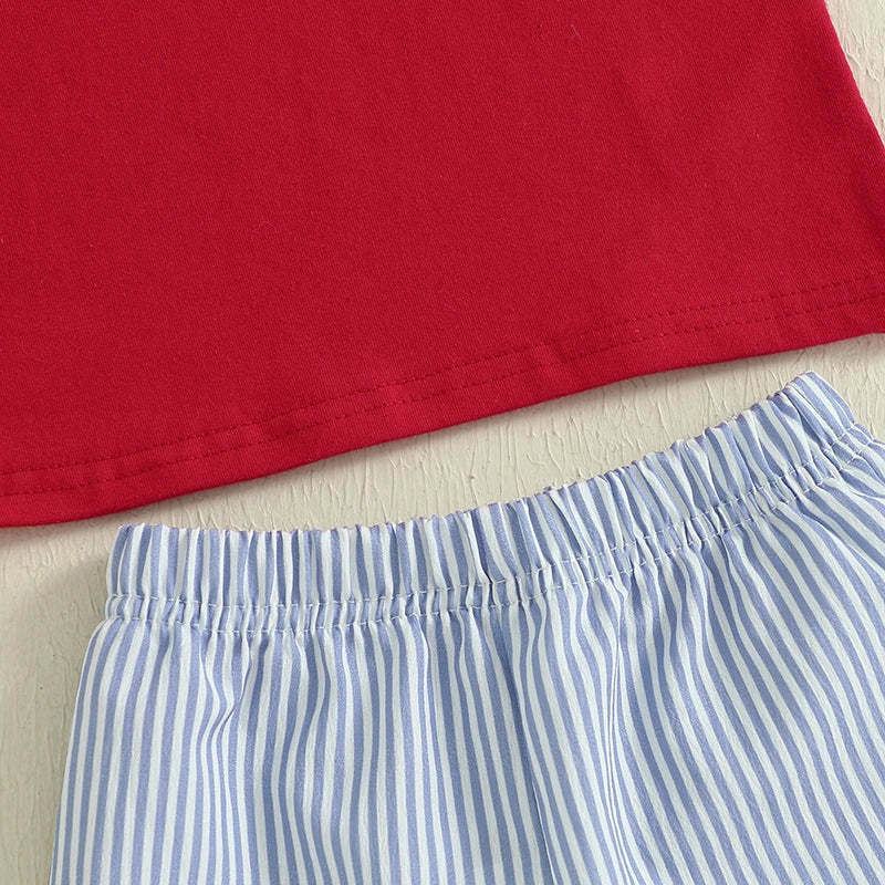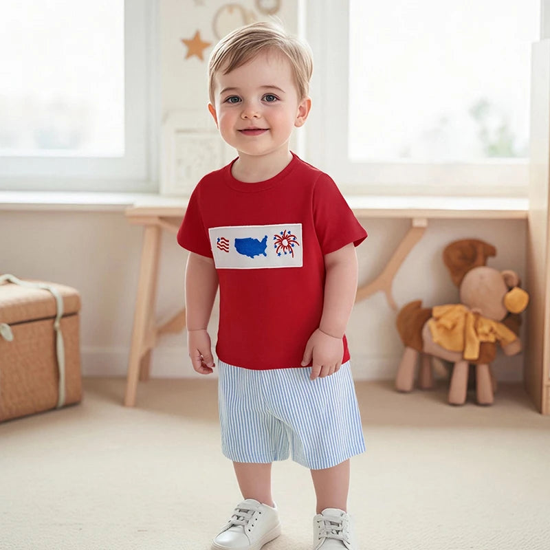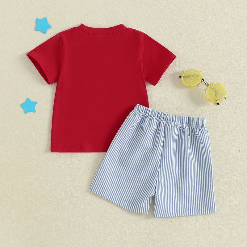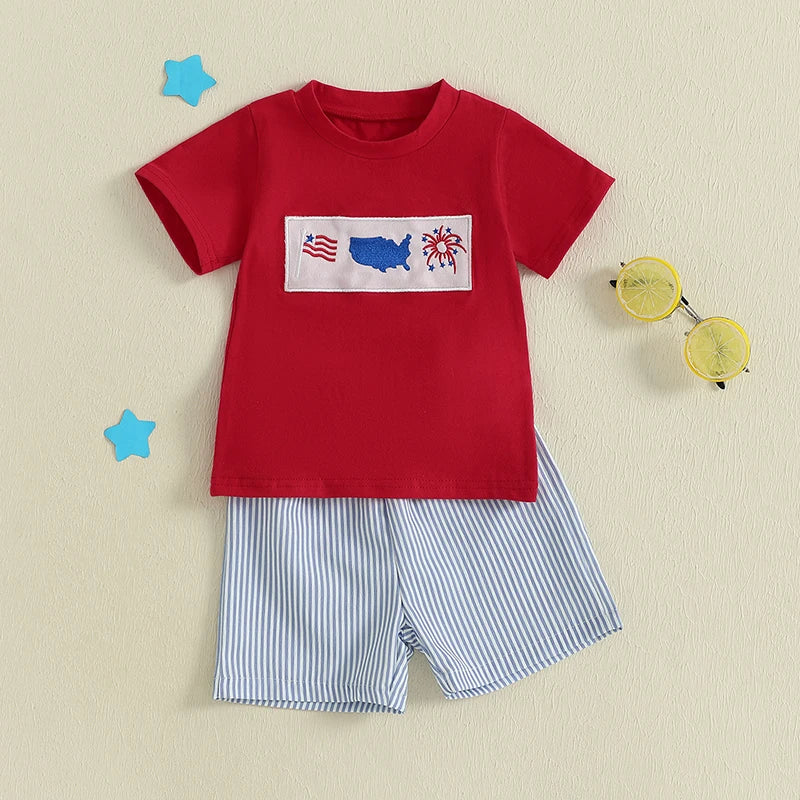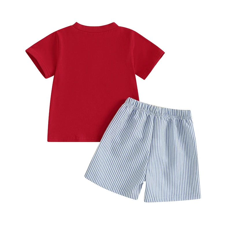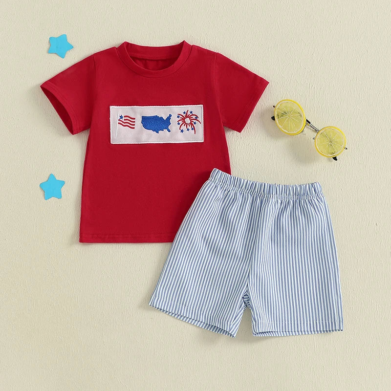 Boy's 2-Piece Embroidered 4th of July T-Shirts & Striped Shorts Sets