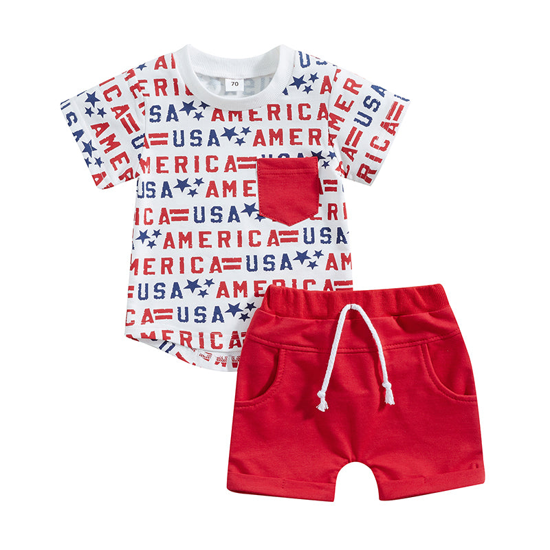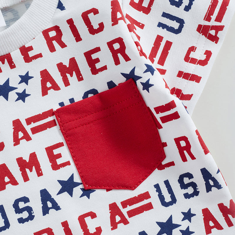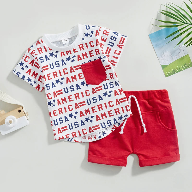 Boy's 2-Piece Independence Day USA America T-Shirt & Shorts Sets