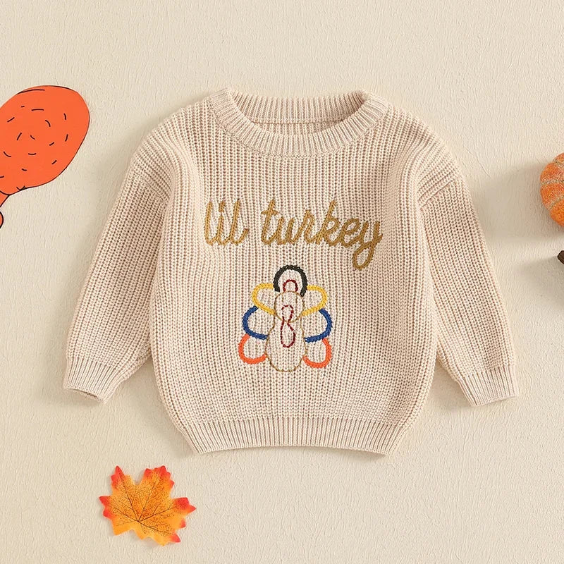 Boy's & Girl's Embroidered "Lil Turkey" Thanksgiving Turkey Sweatshirts