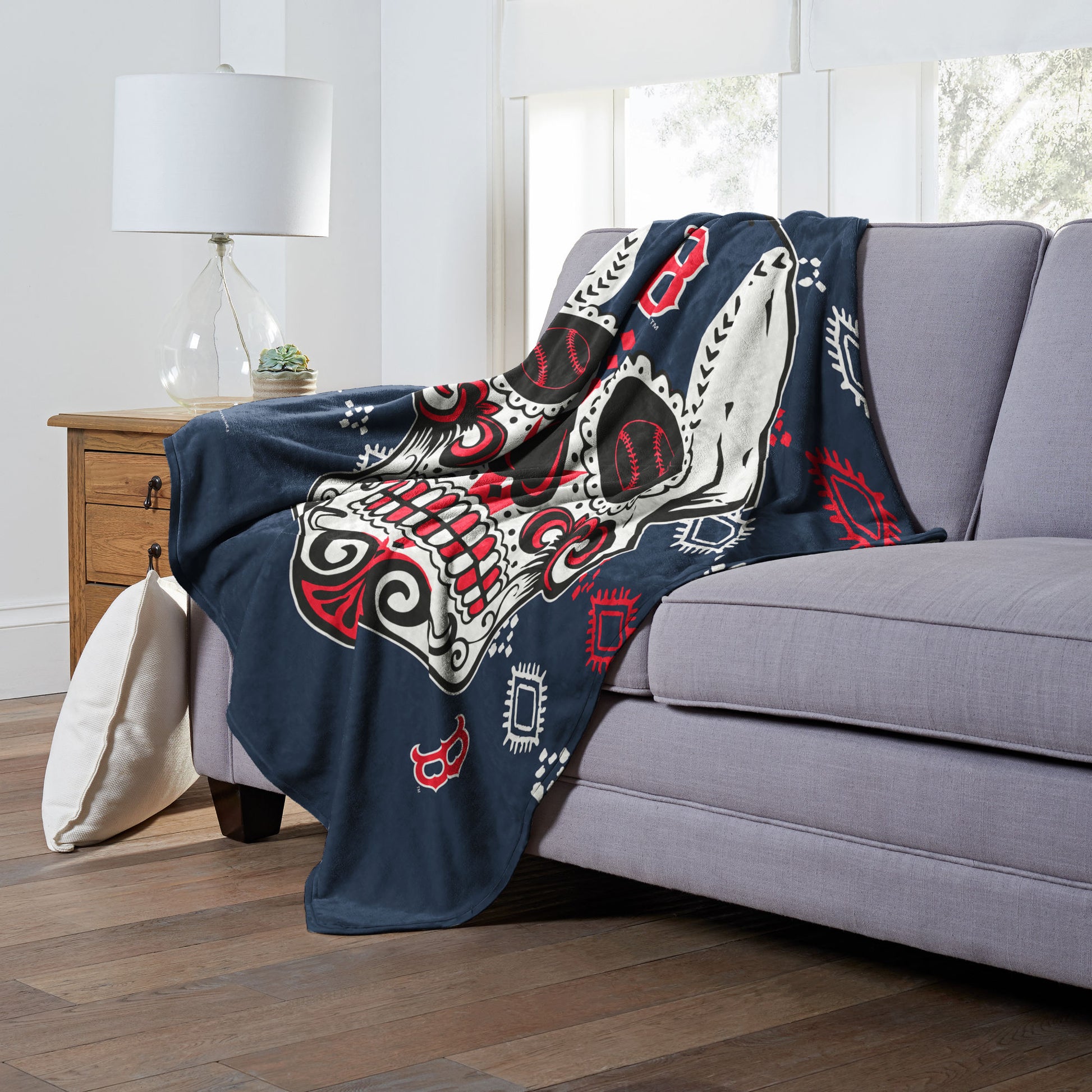 CANDY SKULL - RED SOX Silk Touch Throw 50"x60"