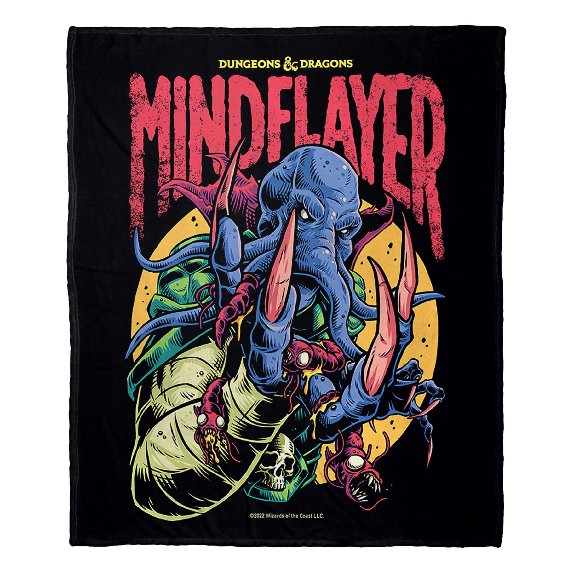 Add a touch of the dark side of Dungeons & Dragons to your collection with the "Mind Flayer" Silk Touch Blanket! Made from 100% silky soft polyester, this throw features the monstrous humanoid aberration, Mind Flayer, holding up creepy crawly creatures in its clawed hand, making it the perfect way to show off your love for the darker side of this beloved fantasy game. Measuring 50 x60 inches in size, this blanket is the perfect size for snuggling up on the couch during game night or wrapping yourself up in for your next adventure. Whether you're a fan of the Mind Flayer or simply love the darker aspects of D&D, the "Mind Flayer" Silk Touch Blanket is a must-have for any true fan. 50″x60″. Made in the USA. Polyester