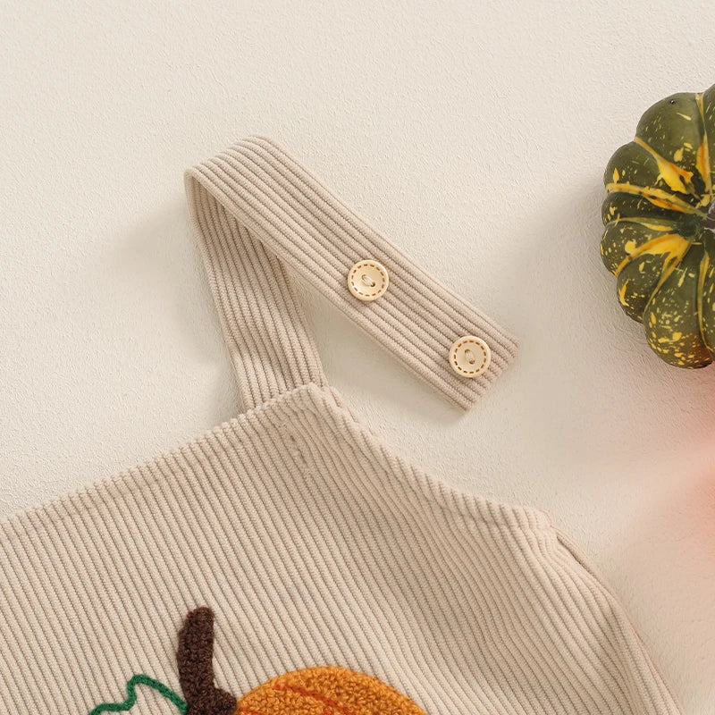 Girl's & Boy's Pumpkin Embroidered Corduroy Halloween Romper Overalls