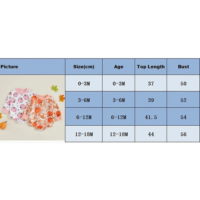 Long sleeve Halloween infant/toddler girl's pumpkin sweatshirt onesie for fall. O-neck. Snaps. Cozy cotton, polyester blend. Each size sold separately and contains 1 onesie