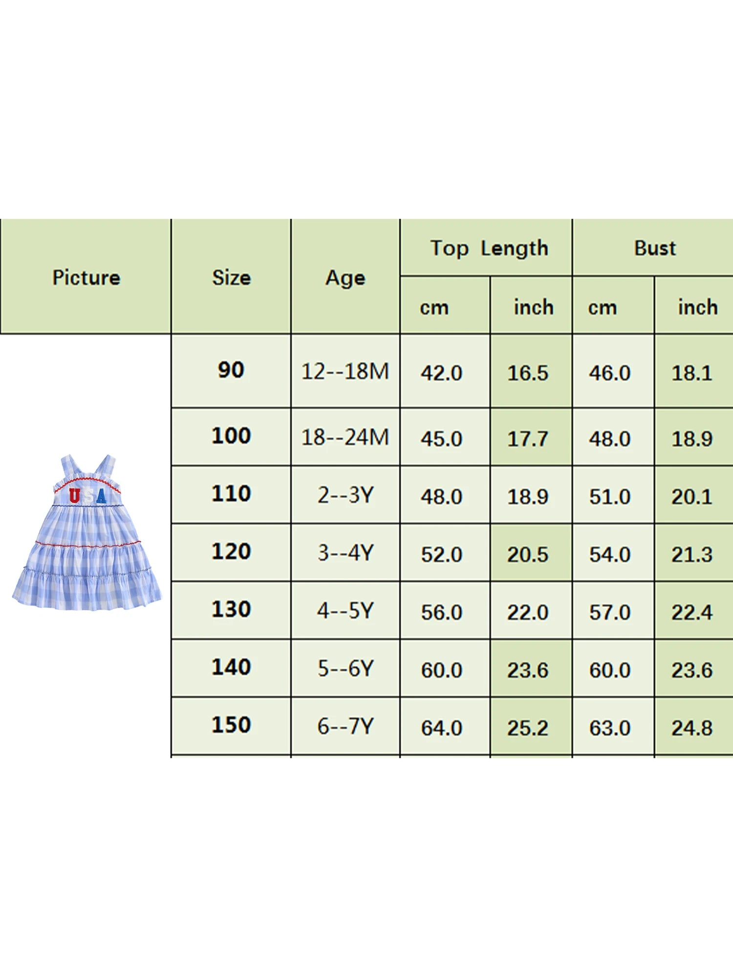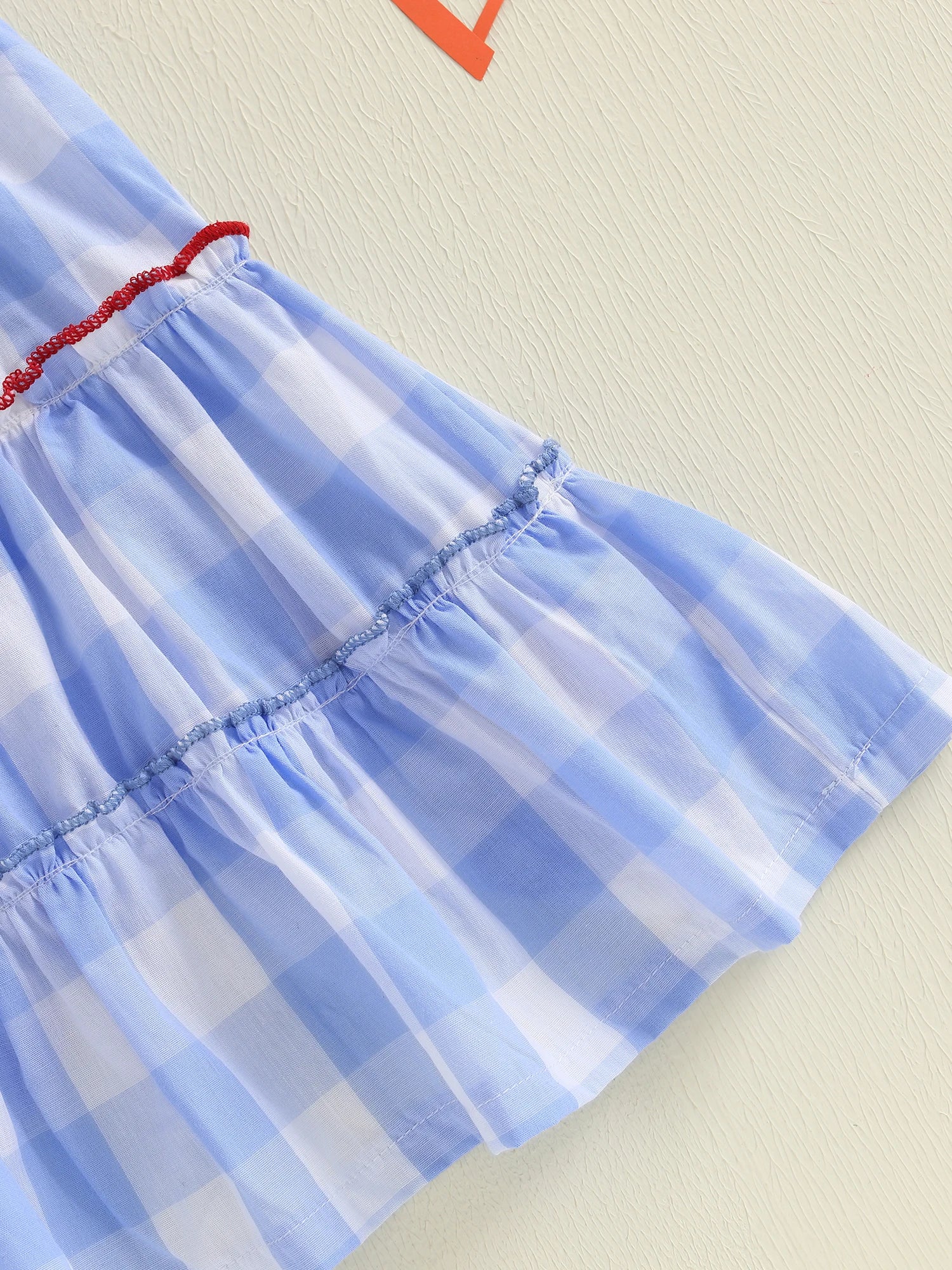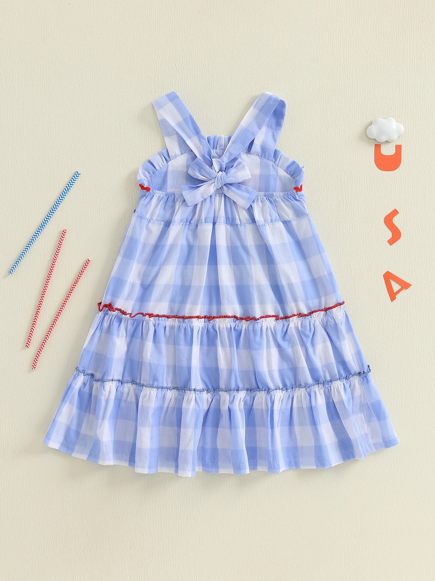 Girl's Plaid Embroidered USA 4th of July Dresses