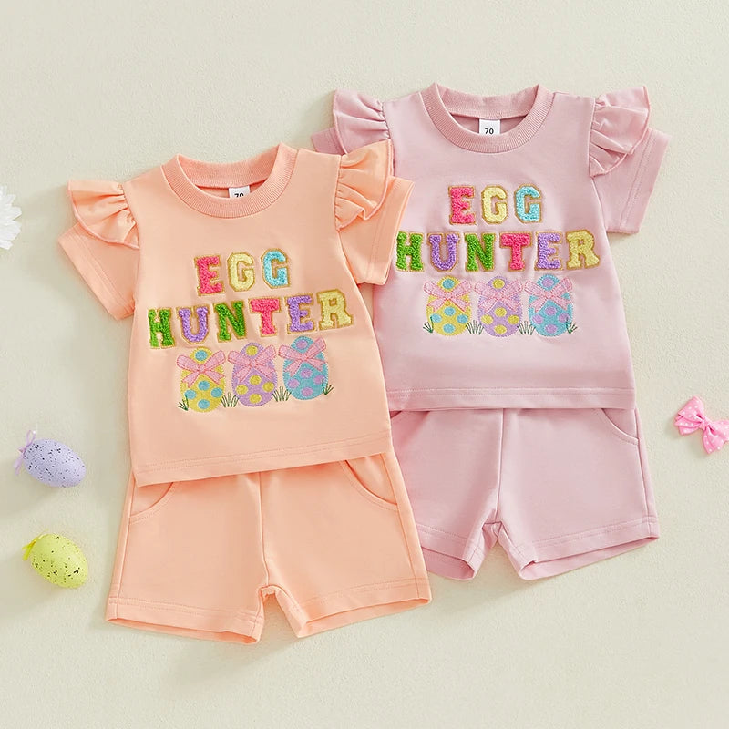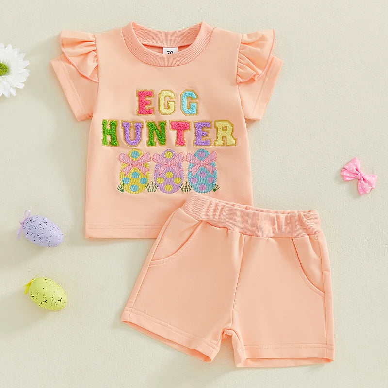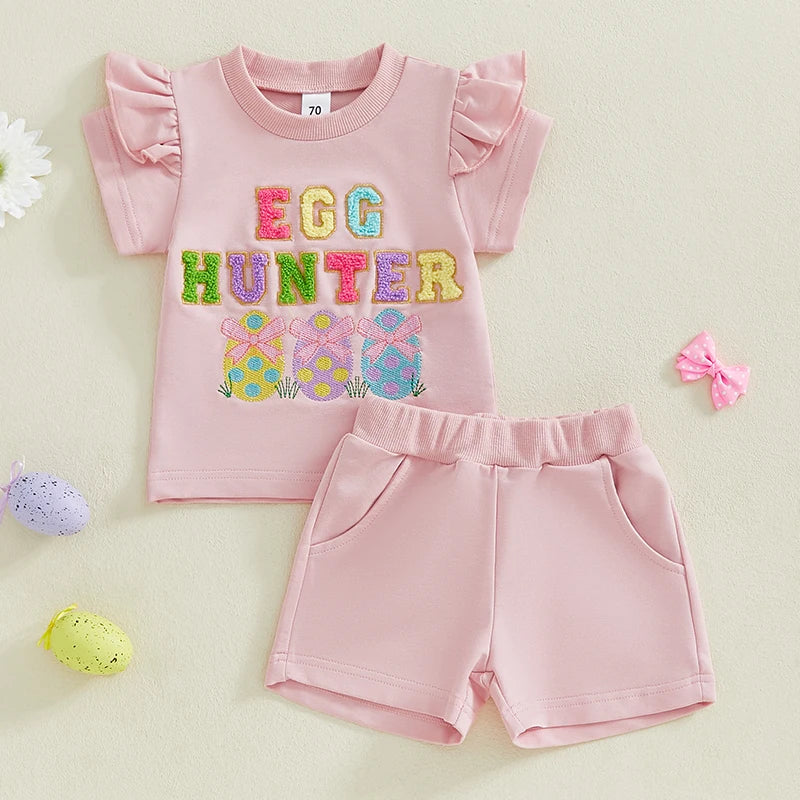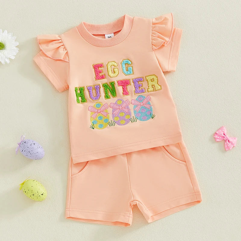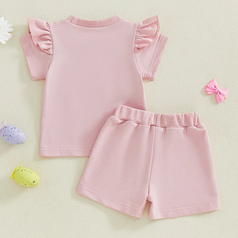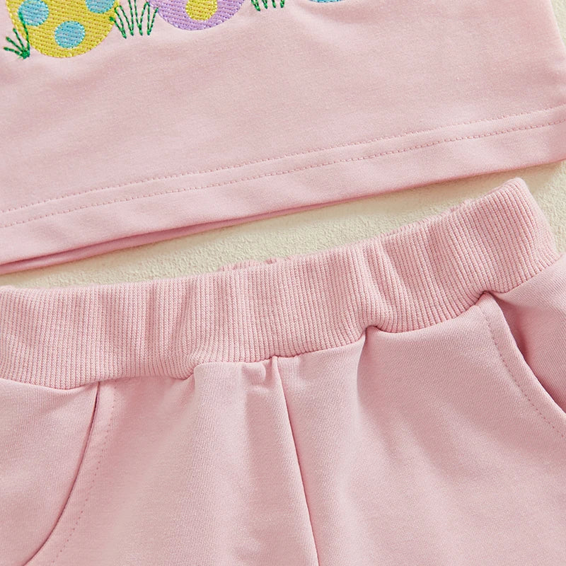 Girl's 2-Piece Embroidered Easter Egg T-Shirt & Shorts Sets