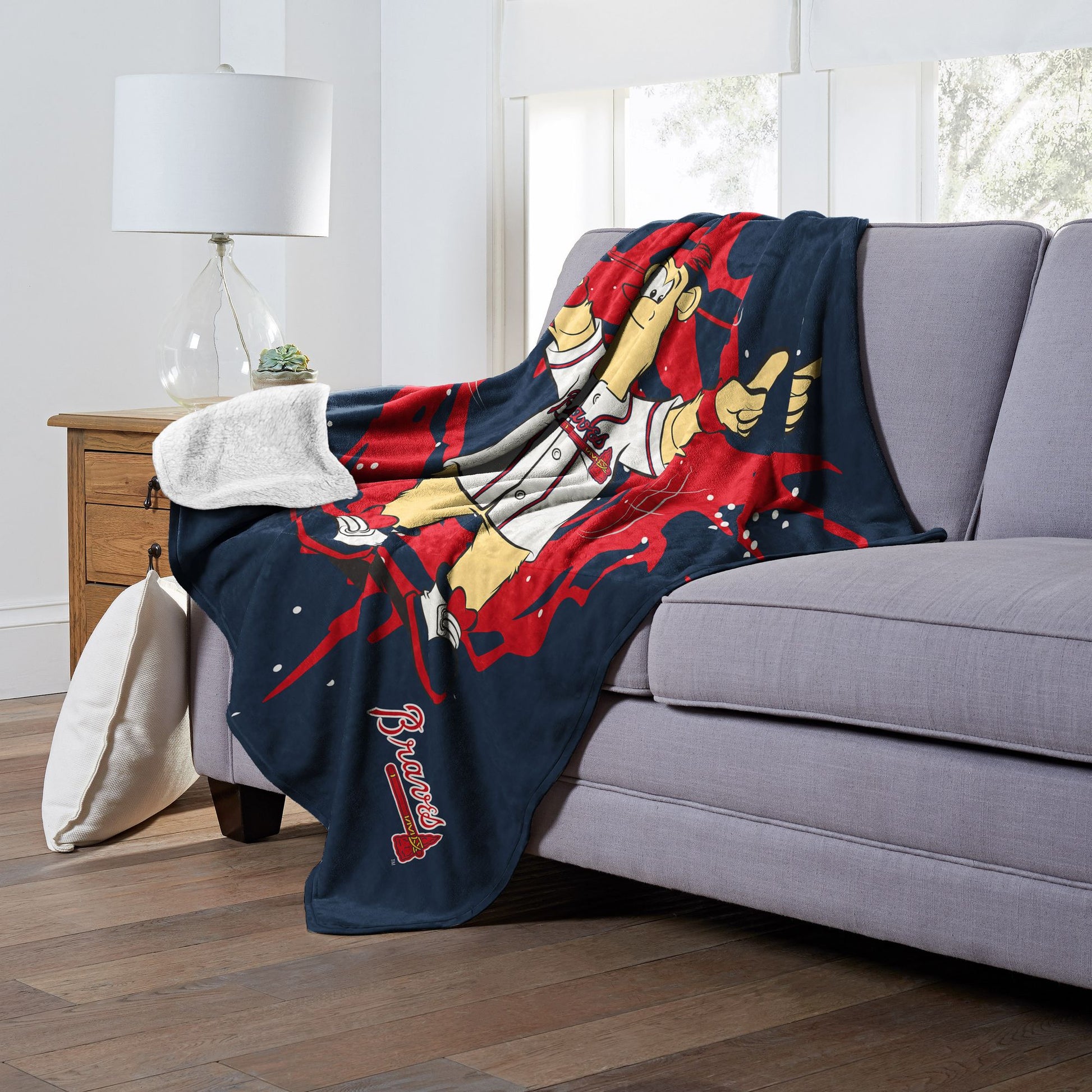 Wrap yourself in comfort and team pride with the Officially Licensed MLB Team Mascot Silk Touch Sherpa Throw Blanket. Made from high-quality 100% polyester, this cozy throw features your favorite MLB Team mascot in an action pose with team logo and colors. The throw measures 50 x 60 inches in size, making it perfect for snuggling up on the couch or staying warm at the game. The luxurious Silk Touch front and soft Sherpa back combine to create an incredibly plush and comfortable blanket that you won't want to put down. Show your love for your team and your favorite mascot with this must-have accessory for any MLB fan.