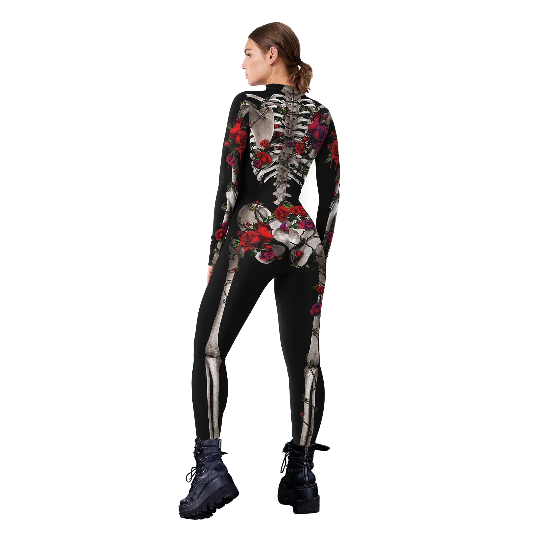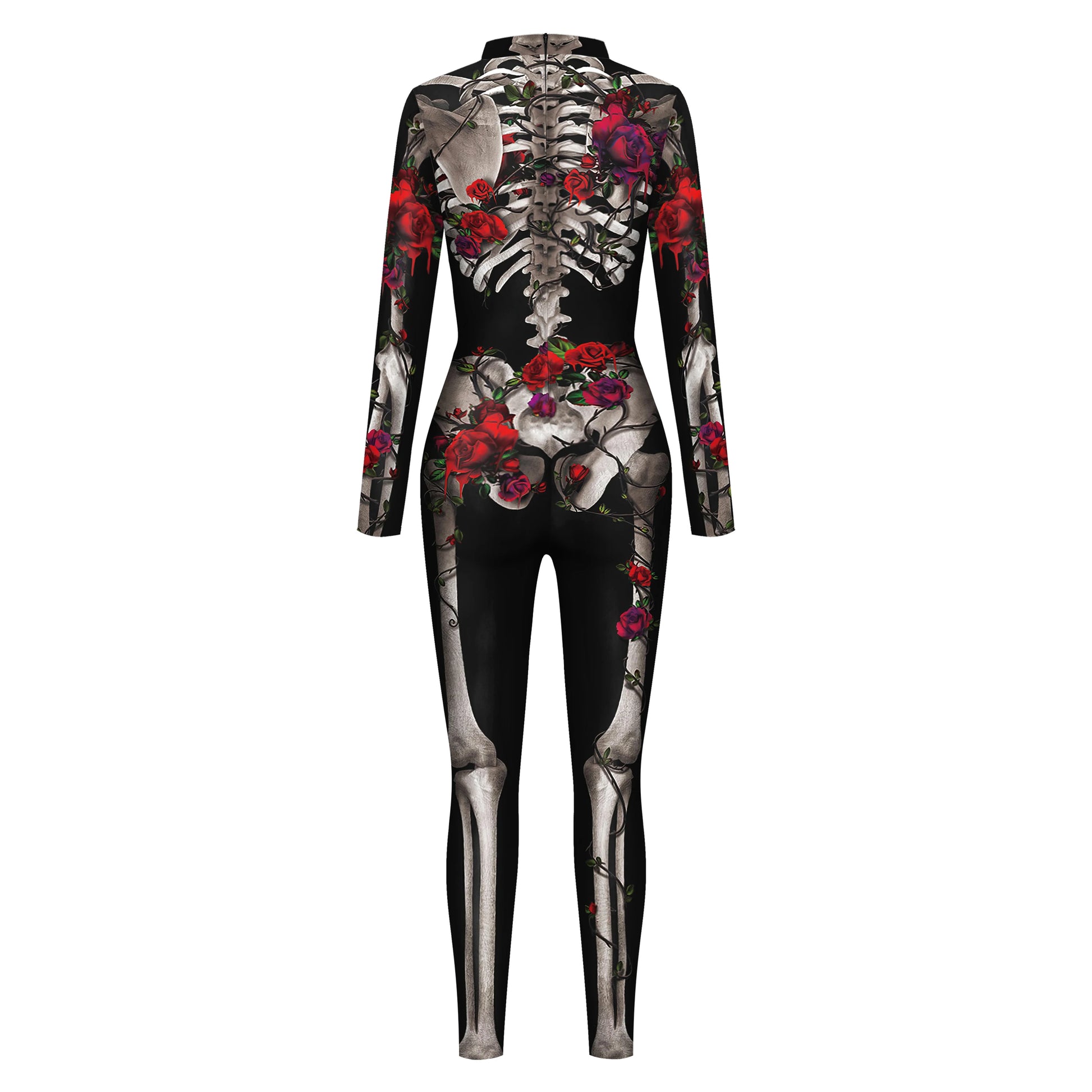 Women's one piece long sleeve skeleton jumpsuits. Spandex. Imported