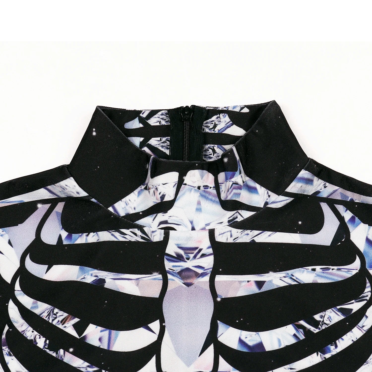 Women's one piece long sleeve skeleton jumpsuits. Spandex. Imported