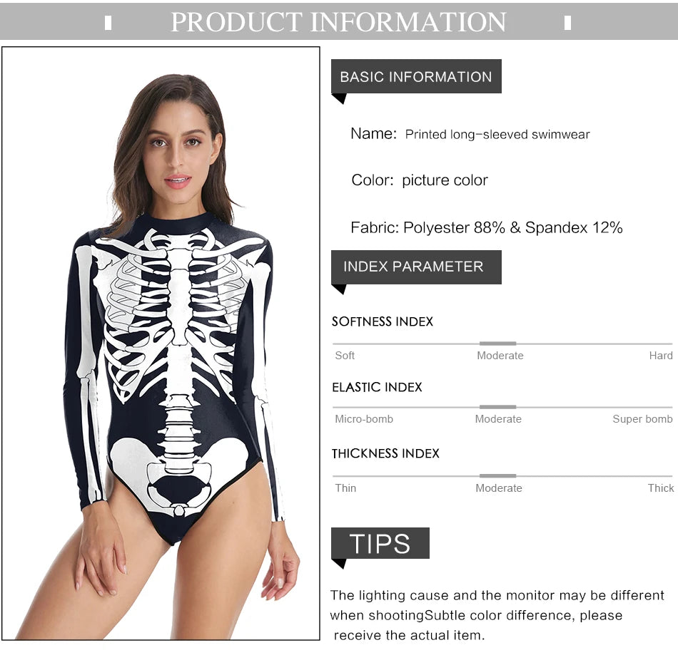 Women's one piece long sleeve skeleton jumpsuits. Polyester, spandex blend. Imported